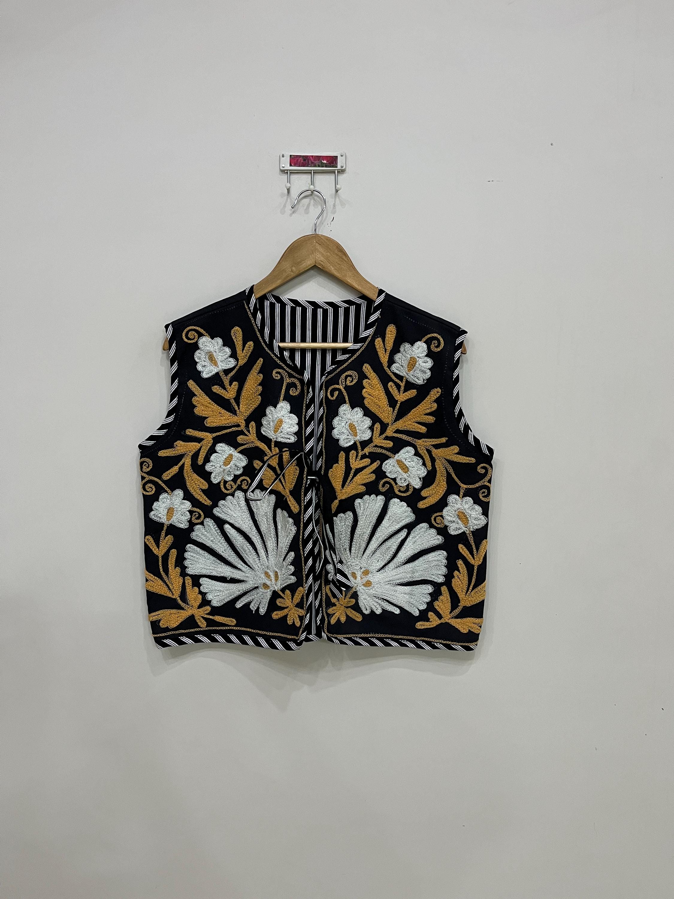 Embroidery Suzani Jacket, Cotton Jacket, Boho Waistcoat, Warm Jacket, Floral Sleeveless Jacket, Suza...