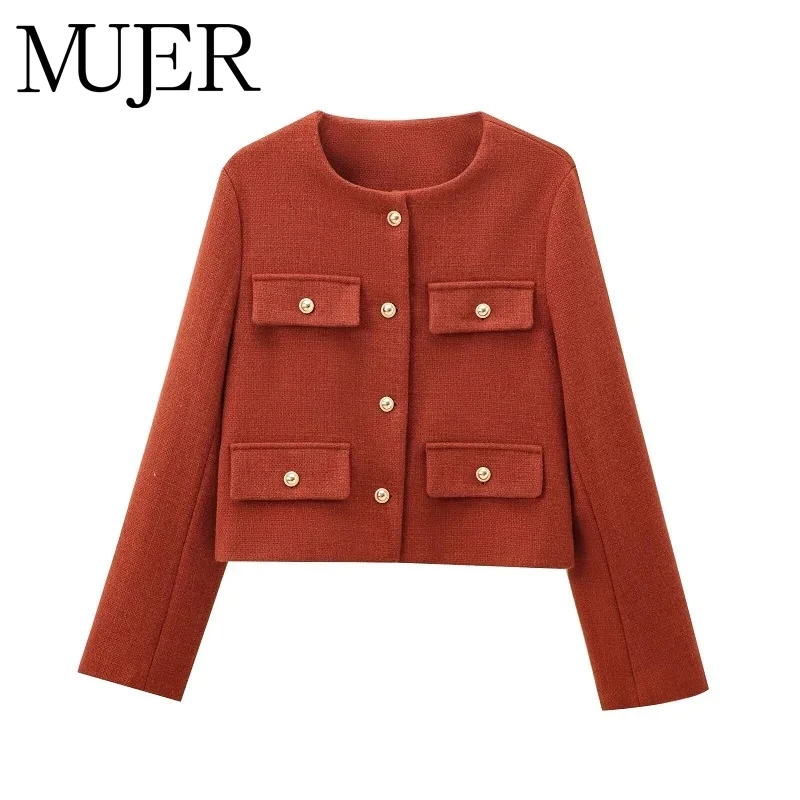 MUJER Cropped Bomber Jackets for Women Coats Tweed Demi-season Jack...