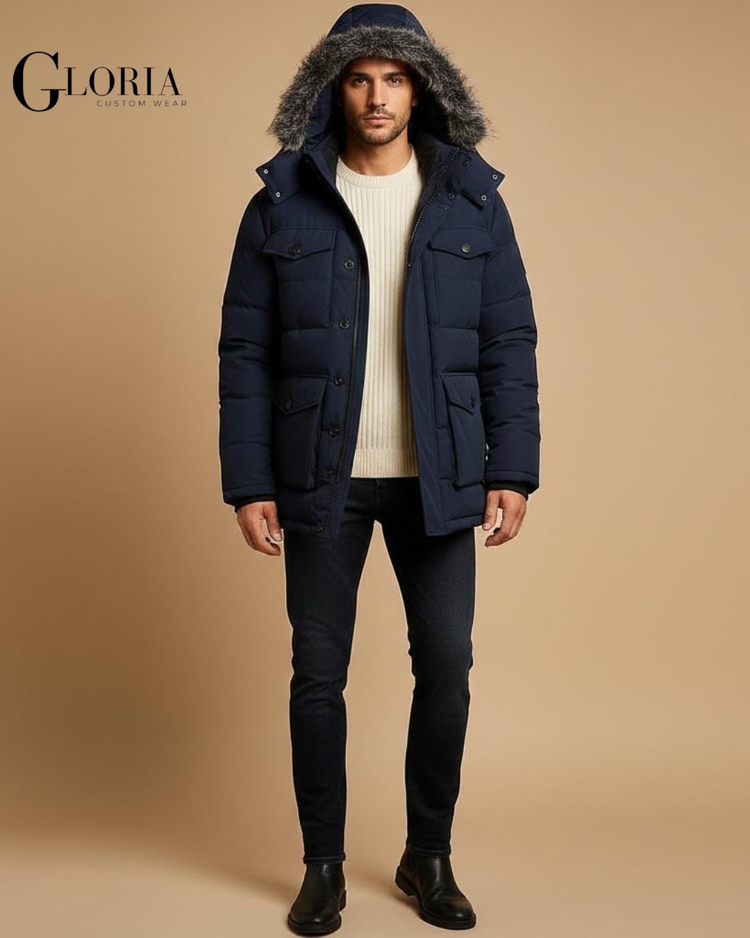 Stay warm in style with this Men's Navy Winter Parka by Gloria Custom Wear ️ Designed for col...
