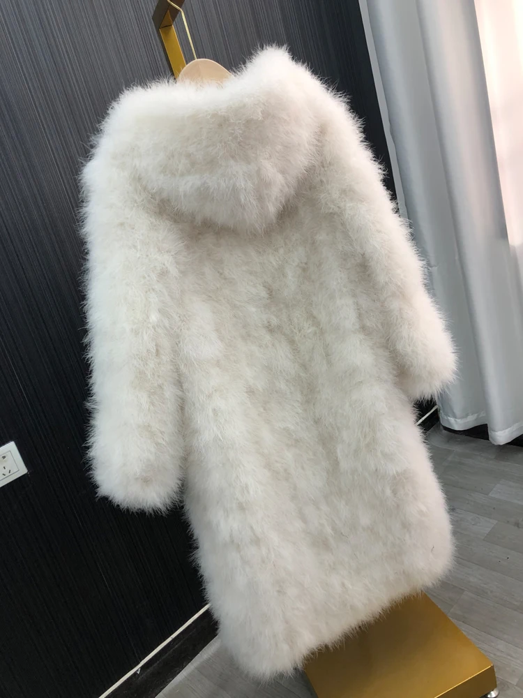 Length with cap Fluffy Feather marabou Jacket Winter Womens Clothing Outerwear Warm Coat Eveningwear...