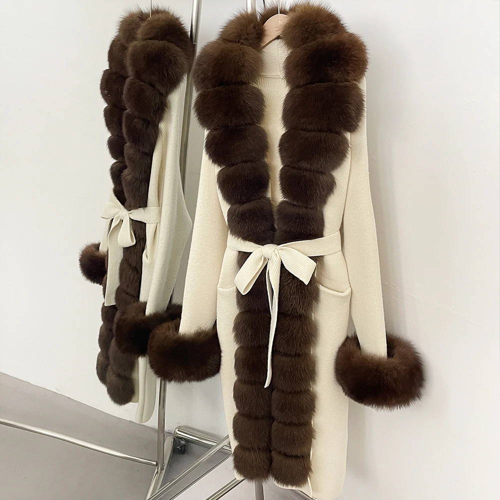 Elegant Cardigan Femmes Natural Fur Coats Knitting Women's Sweater ...