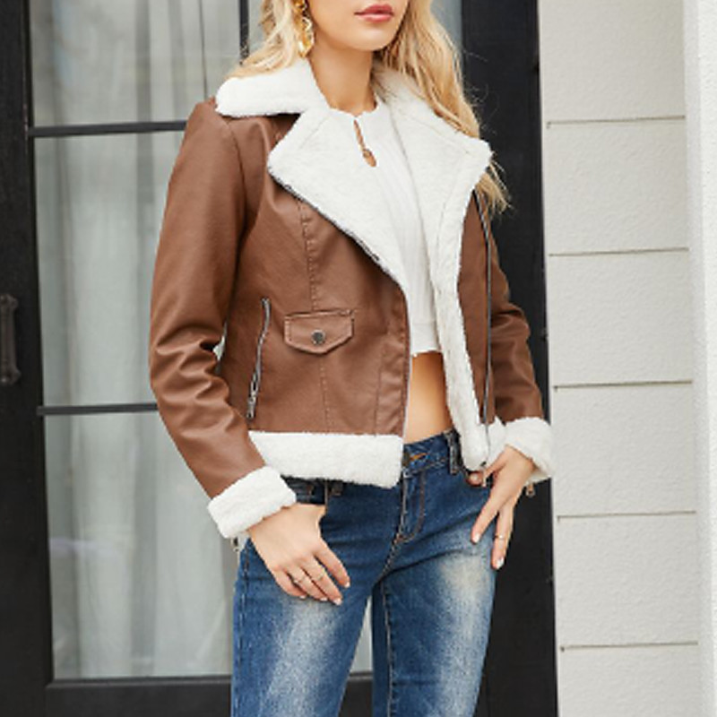 Women's Faux Leather Jacket Fur Leather Jackets Warm Comfortable Zi...