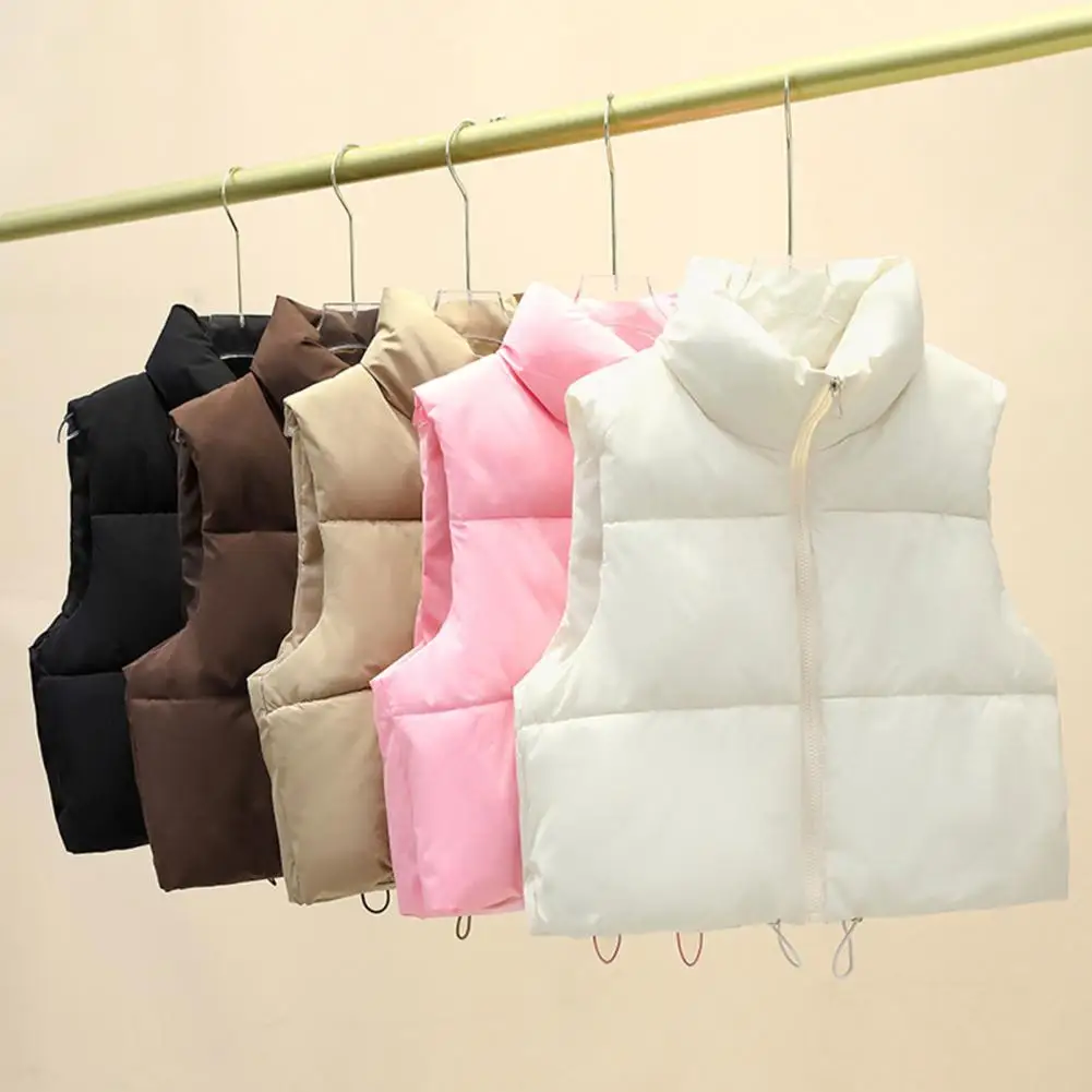 Autumn And Winter Women's Short Cotton Down Vest Short Stand-up Collar Warm Sleeveless Quilted Vest ...