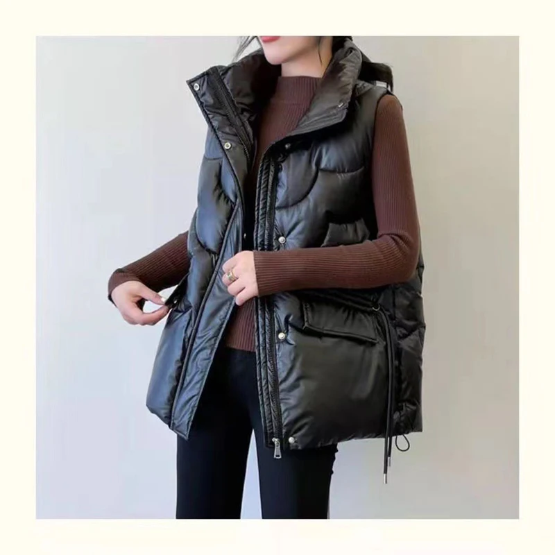 Stand-Up Collar Shiny Down Cotton Vest Women Autumn Winter Sleeveless Coat Jacket Overcoat Quilted P...