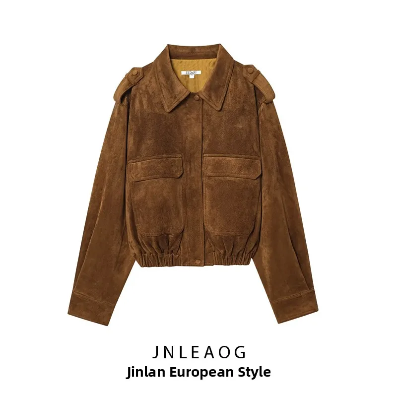 JNLEAOG Autumn New Style Women's Retro Suede Workwear Jacket Outerw...