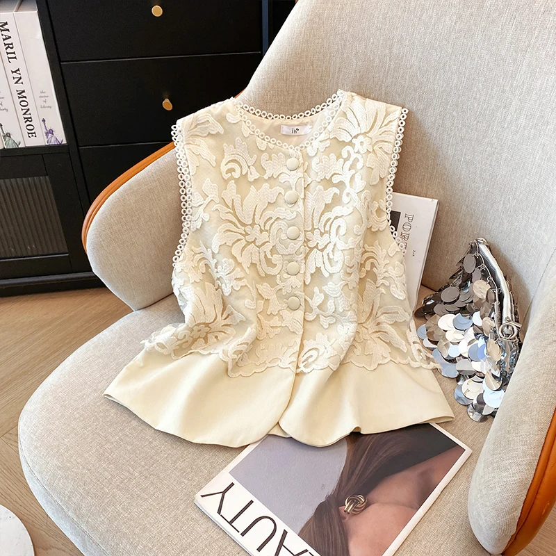 Elegant Chinese Style Embroidered Vest Women Summer Sleeveless Office Casual Blouse Ladies Chic Tops...