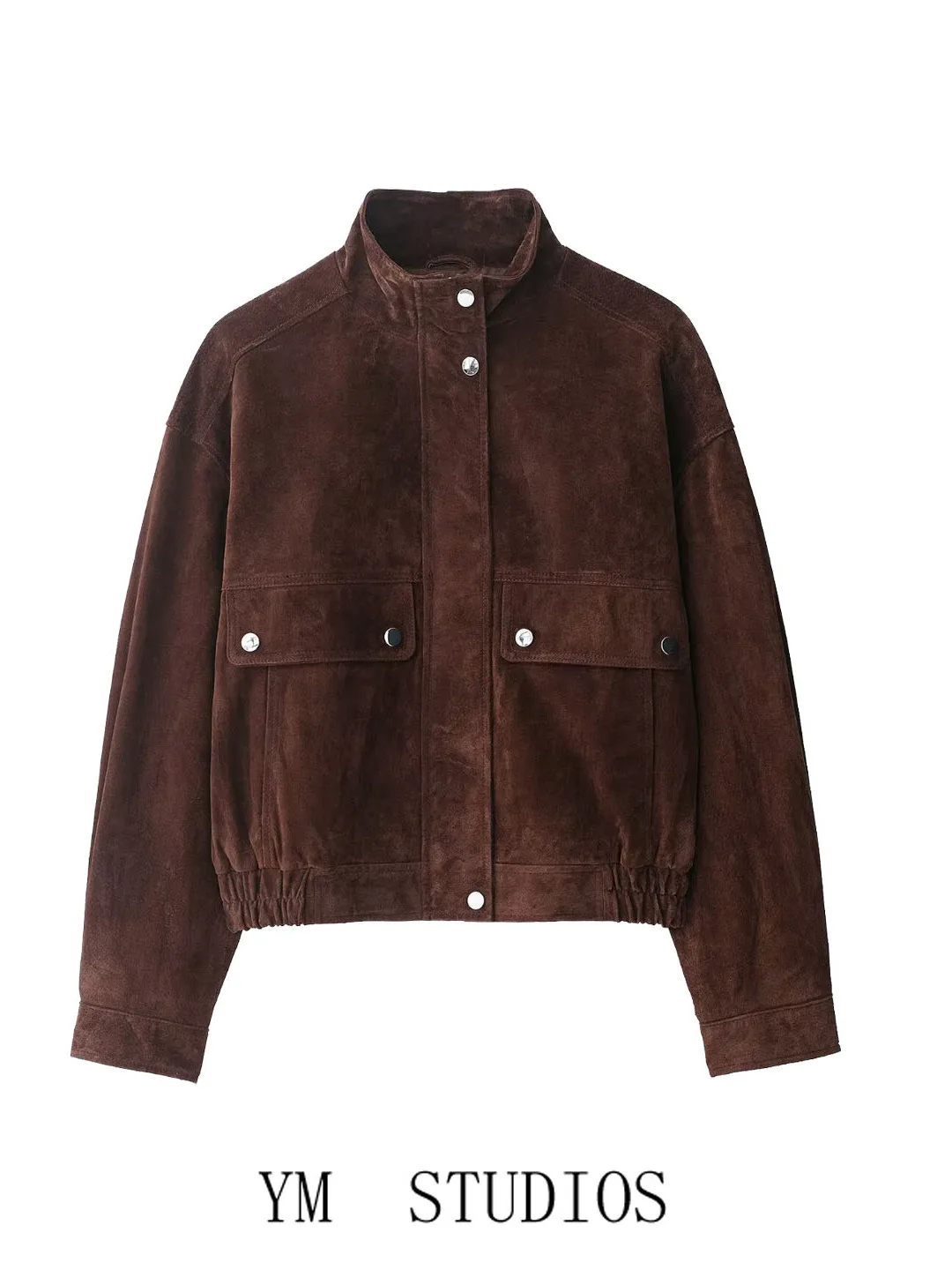 Retro American Women's Short Suede Jacket Workwear Outerwear Stand ...