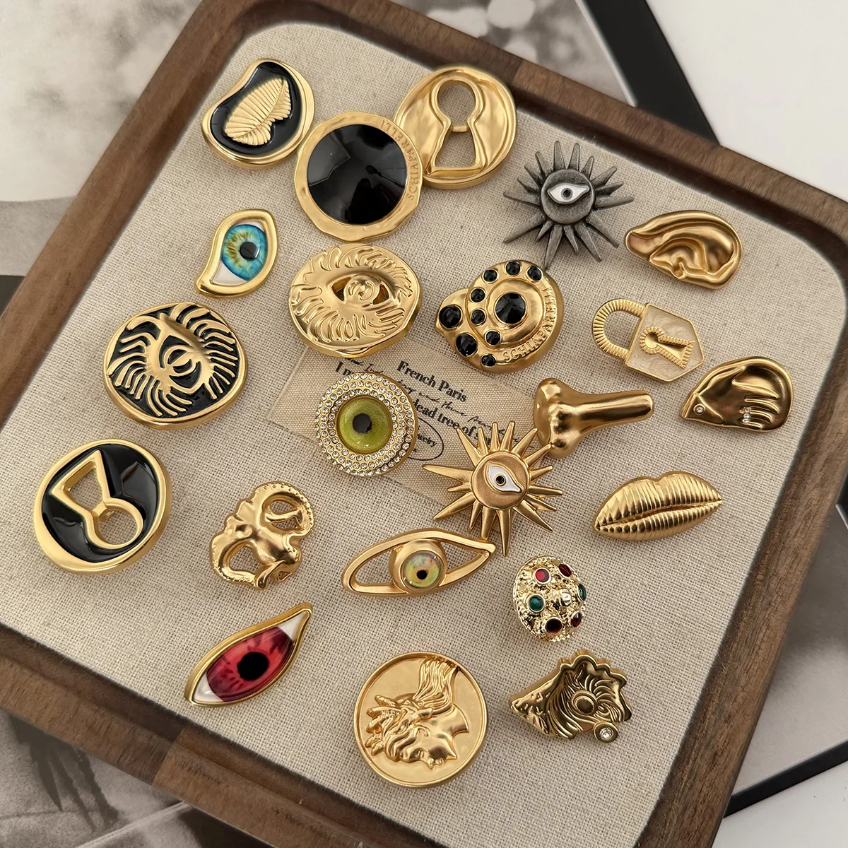 Small Fragrance Style Medieval Design Metal Button Woolen Coat Fur Jacket Decorative Button Suit Ves...