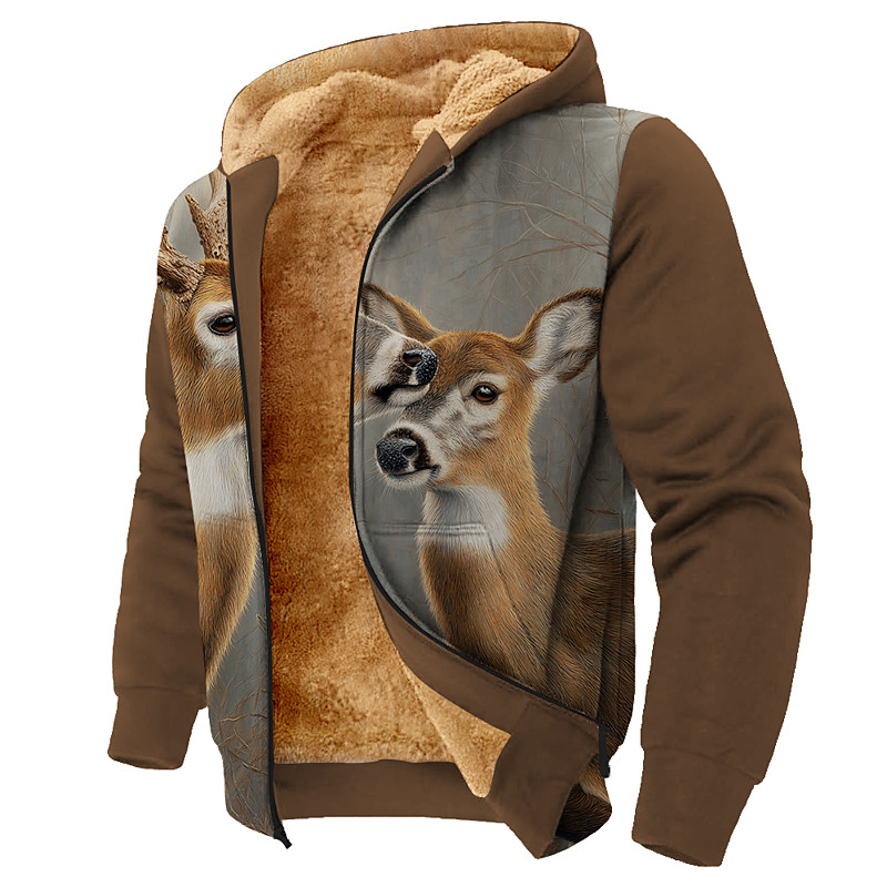 Men's Camouflage Deer Fleece Hoodie Jacket Sweatshirt Classic Milit...