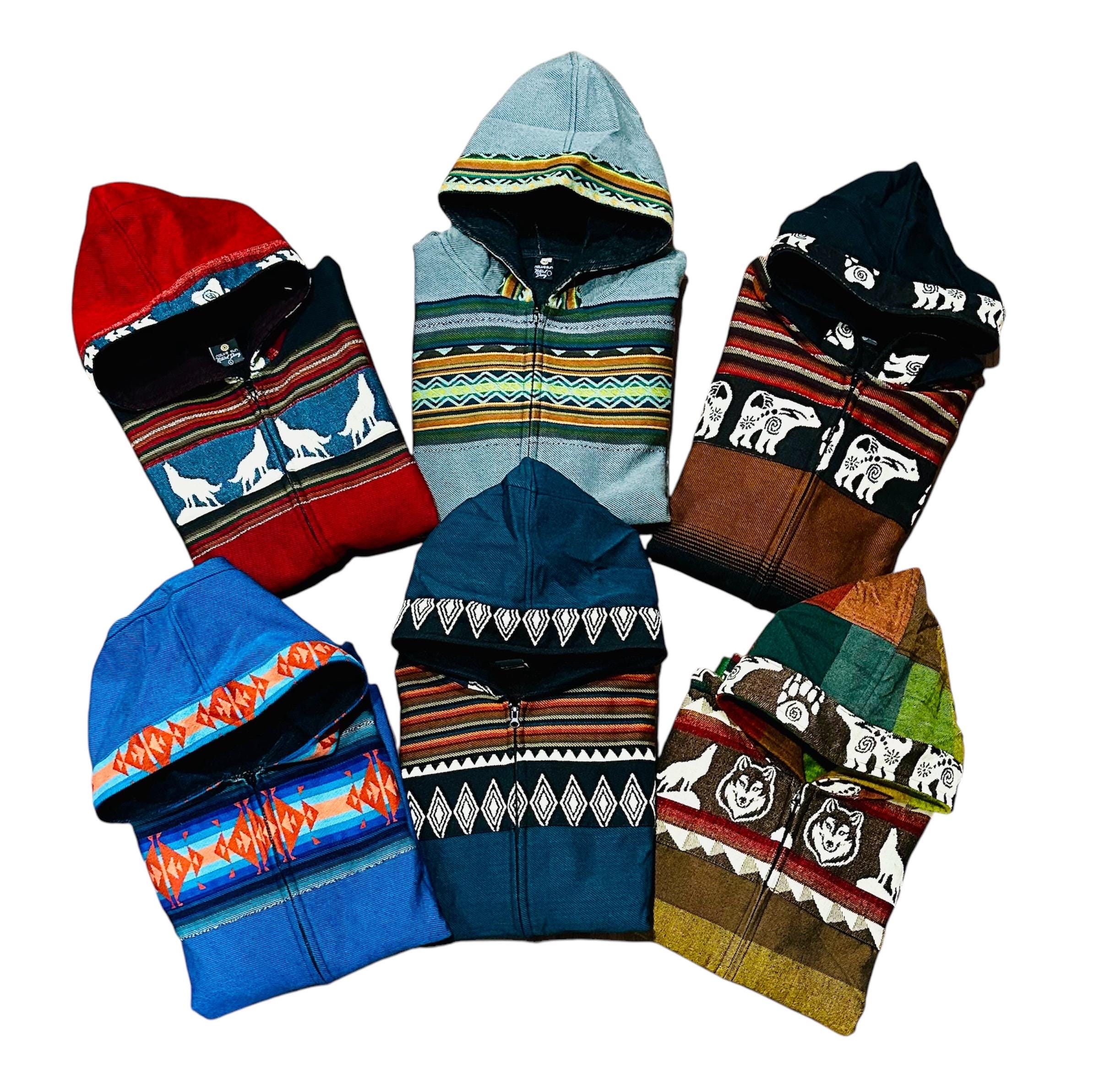 One of a kind zip up Jacket, Wool native sweater, Tribal zip up hoo...