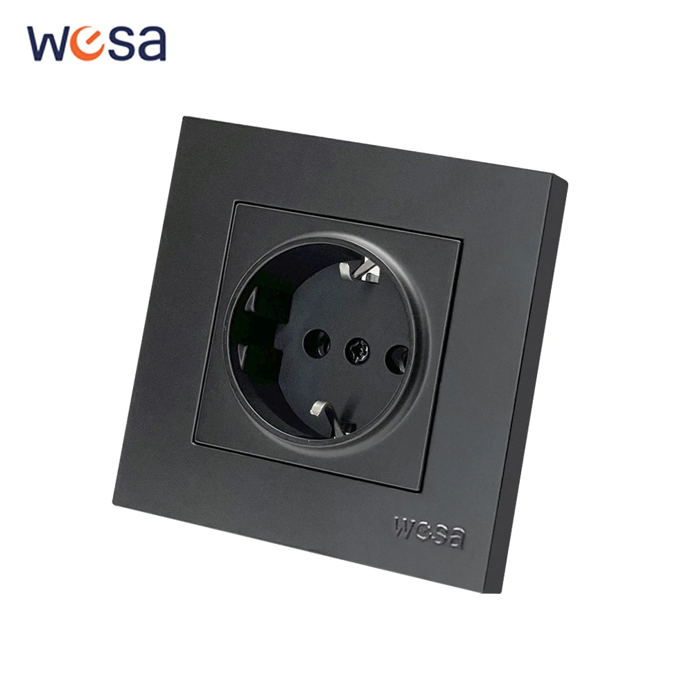 Black Electrical Outlets Flame Retardant With Ground Classic AC EU Standard Wall Embedded 250V Plugs...