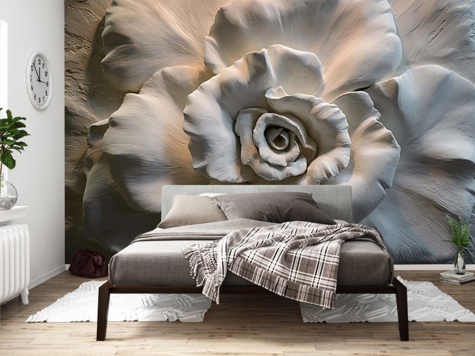 Big Flowers 3D Effect Wallpaper , Peel and Stick Wall Mural for Bea...
