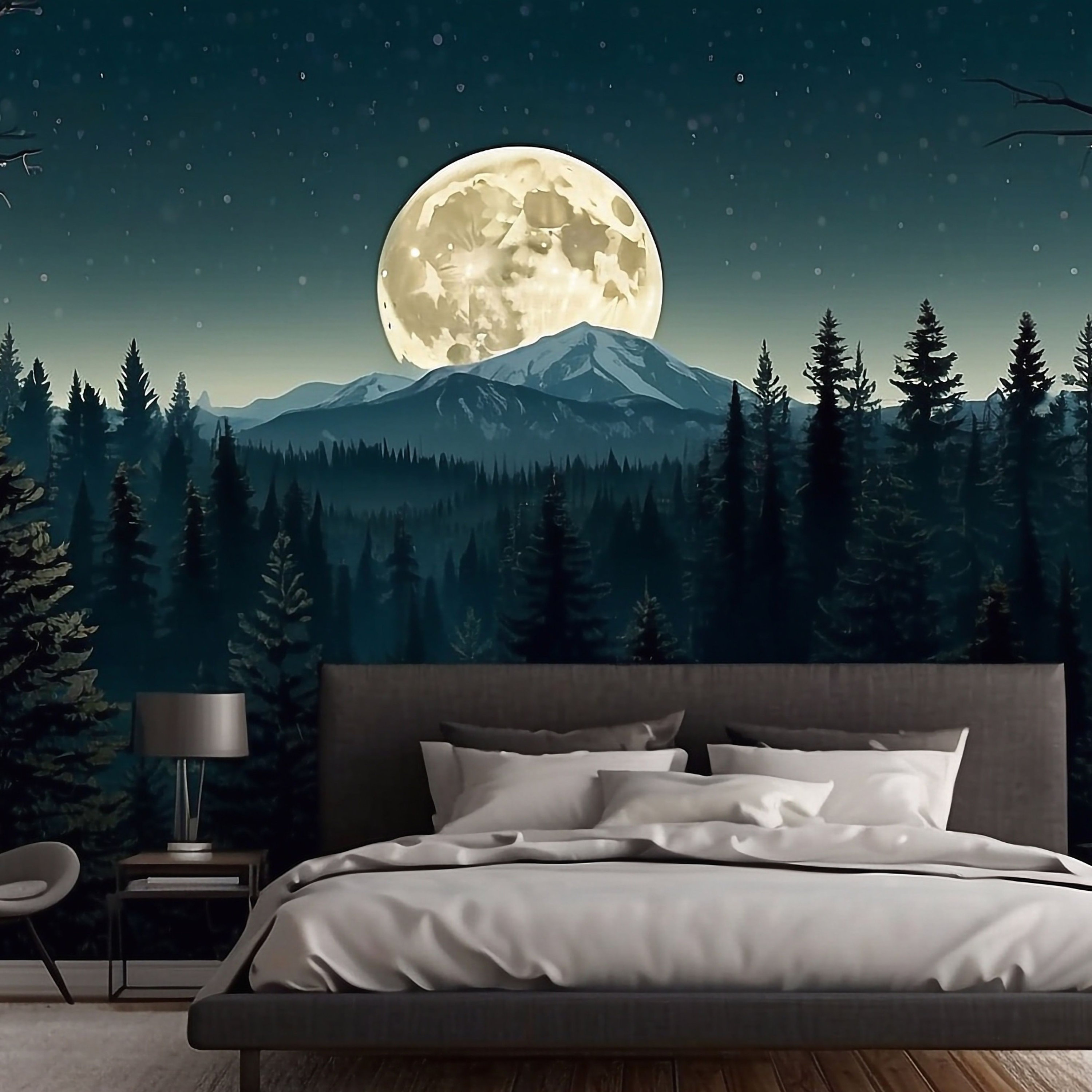 3D effect wallpaper, abstract landscape, dark forest, mountains, mo...