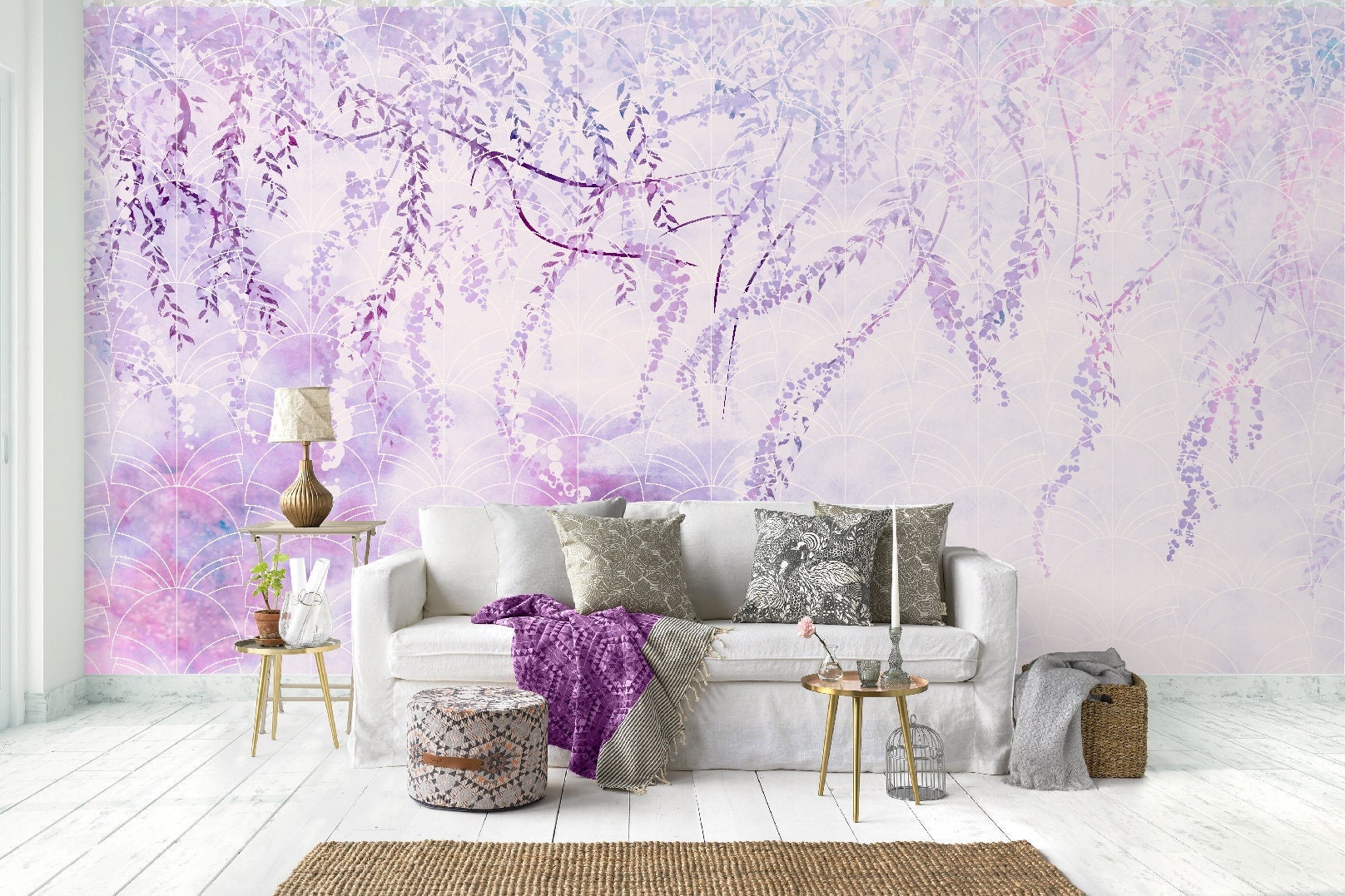 "Purple Wallpaper, Leaves Wallpaper Vinyl, 3D Wallpapers, Floral Wallpaper, Nature Wallpaper, T...