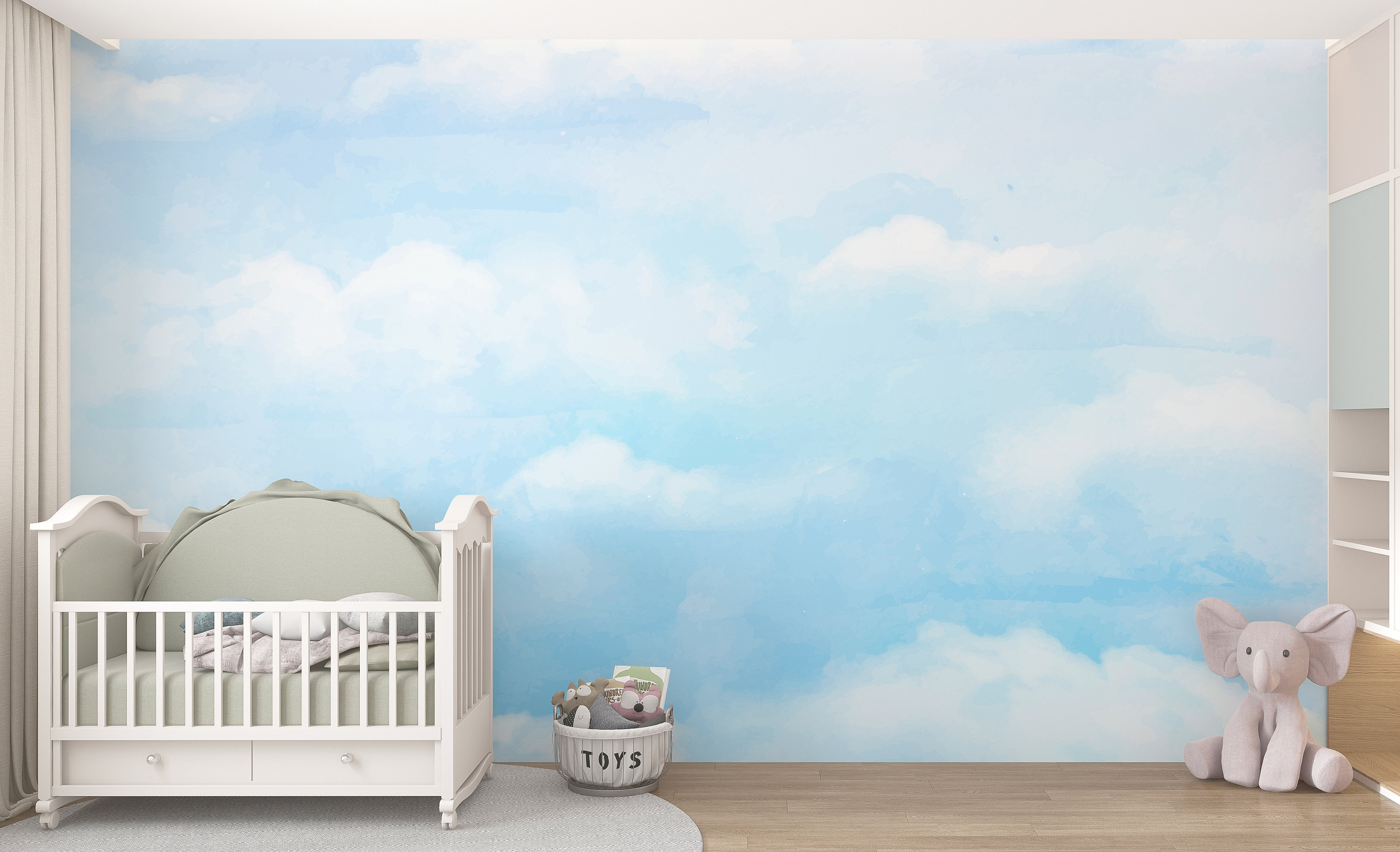 Sky Wall Mural/ Clouds Wall Mural/ Blue Sky Photo Wallpaper/ Pastel...