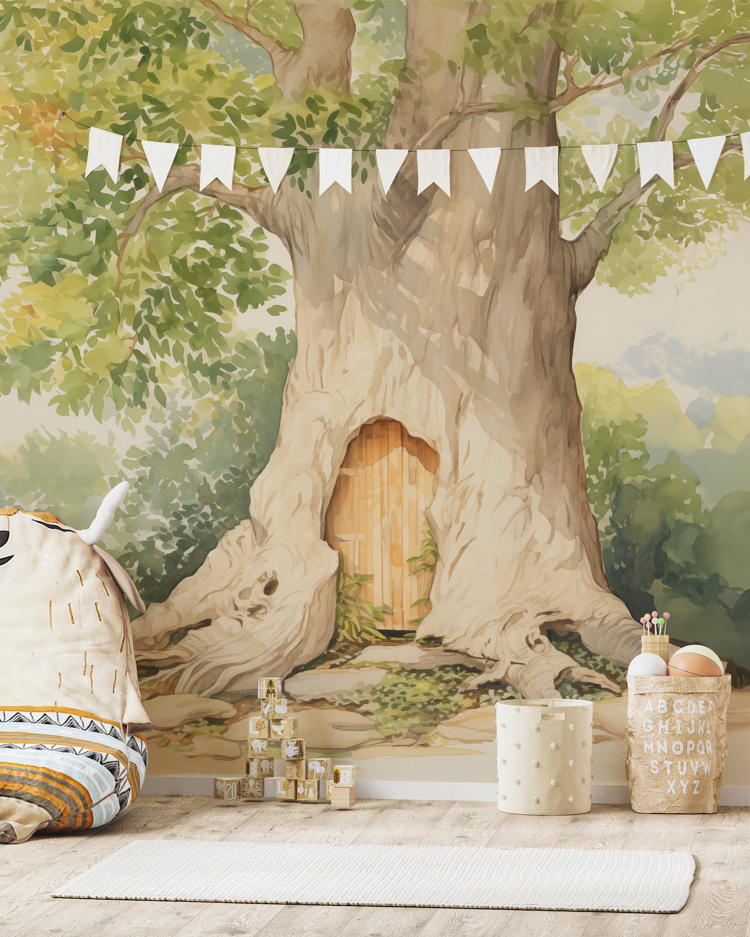 Pooh's House Mural. Bedroom Mural Wallpaper. Removable Peel and Sti...