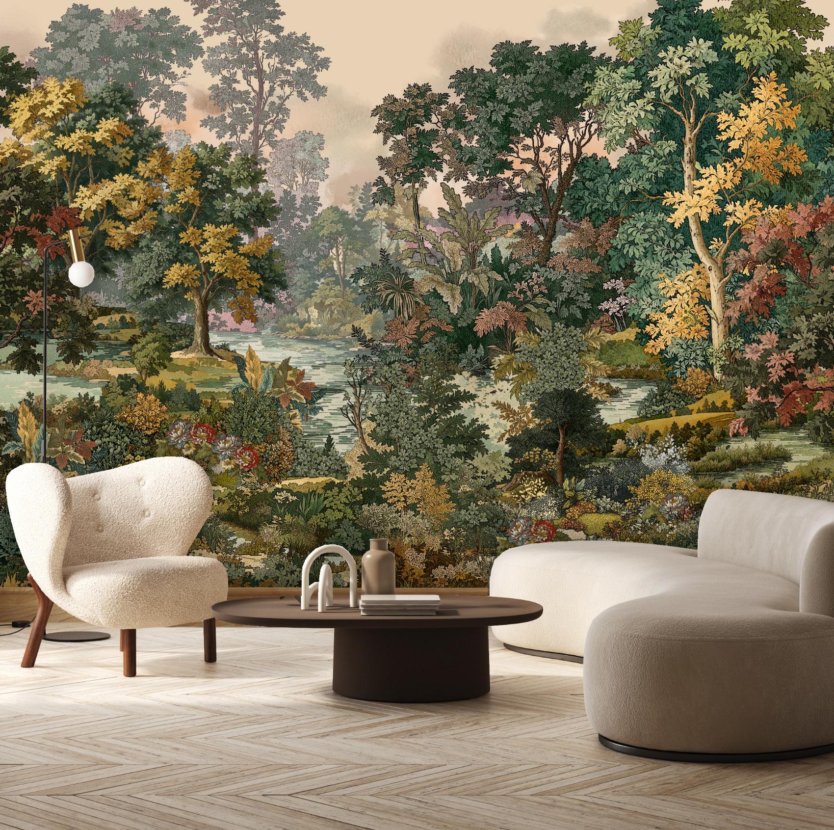 Forest Trees Mural, Peel & Stick and Traditional Wallpaper, Sce...
