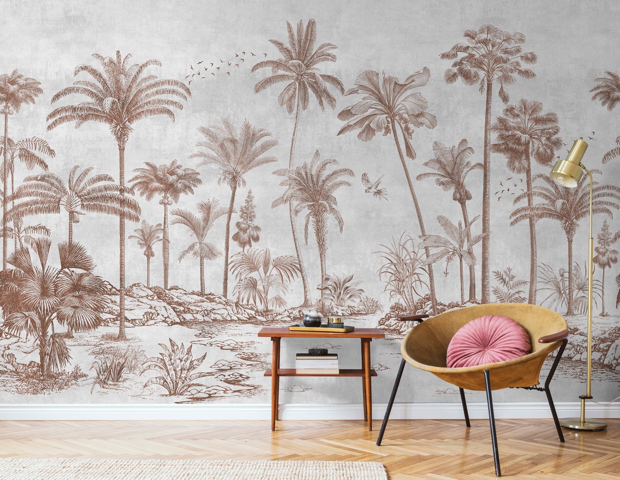 Monochrome Palm Forest Wallpaper | Tropical Vintage Wall Mural | Coconut Tree Peel and Stick You don...