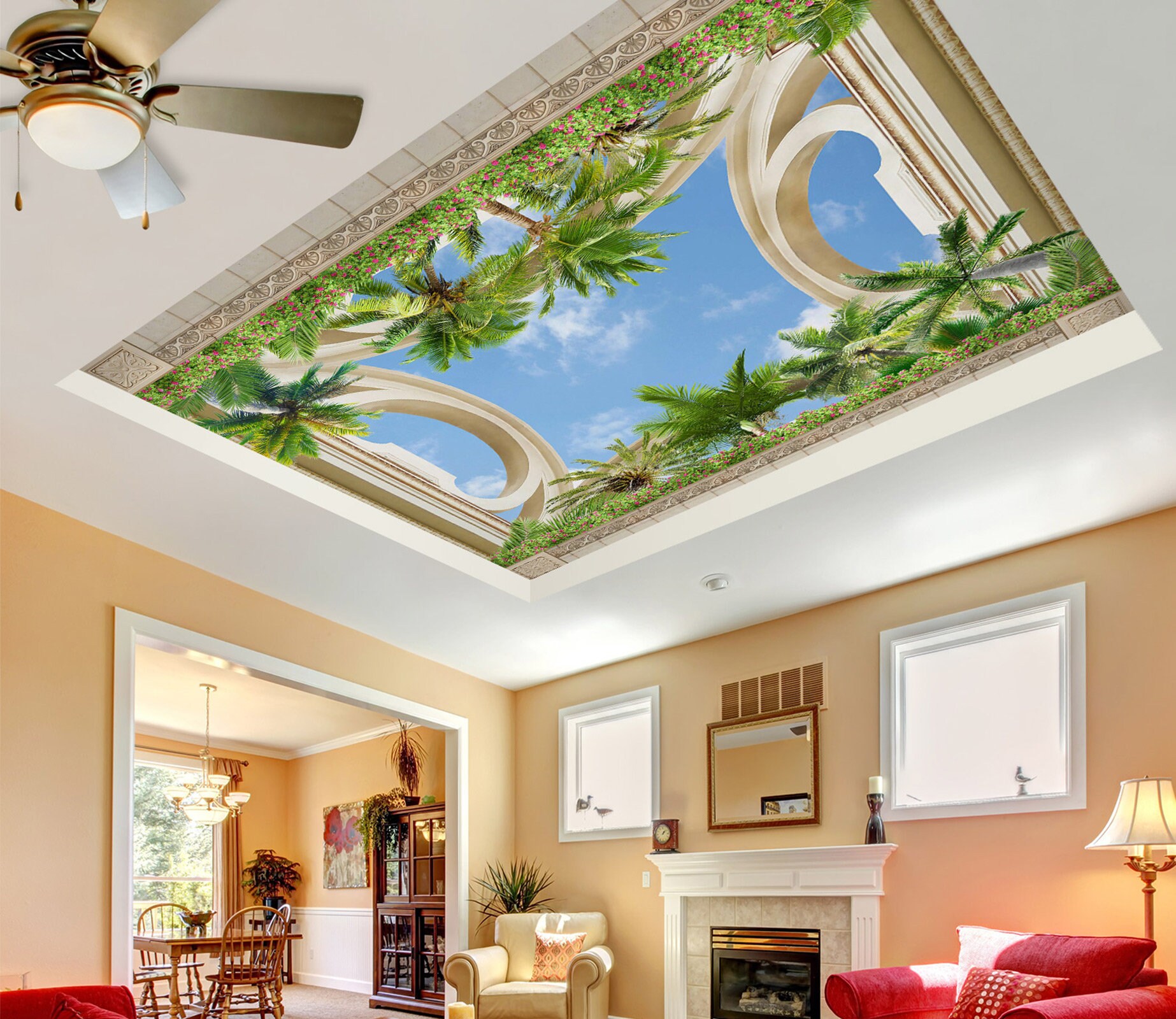 3D Summer Coconut Trees CA585 Ceiling Wallpaper Removable Self Adhe...