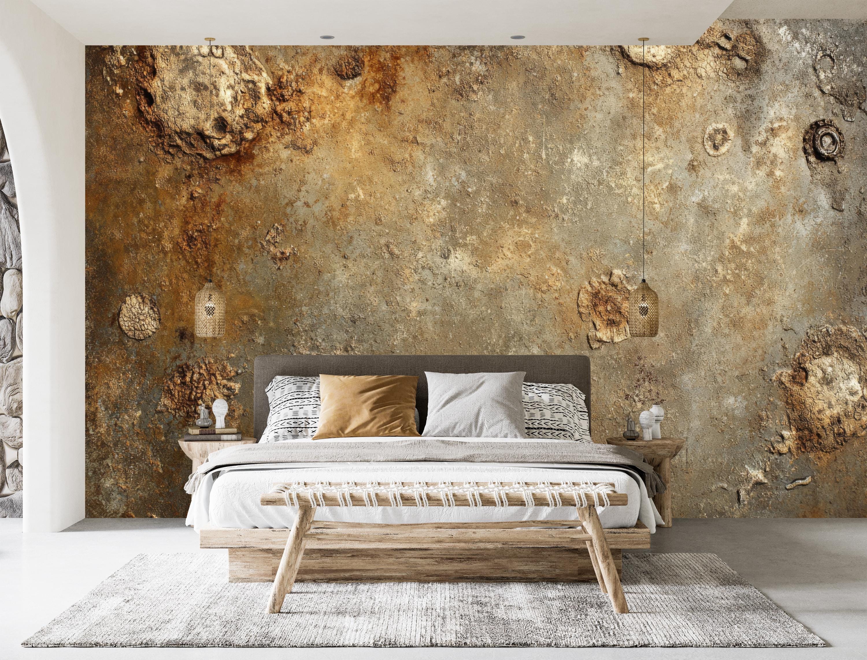 Rusty Copper Textured Wallpaper Peel and Stick,Brown Wall Mural,Dark Ancient Wall Art,Vintage Brown ...