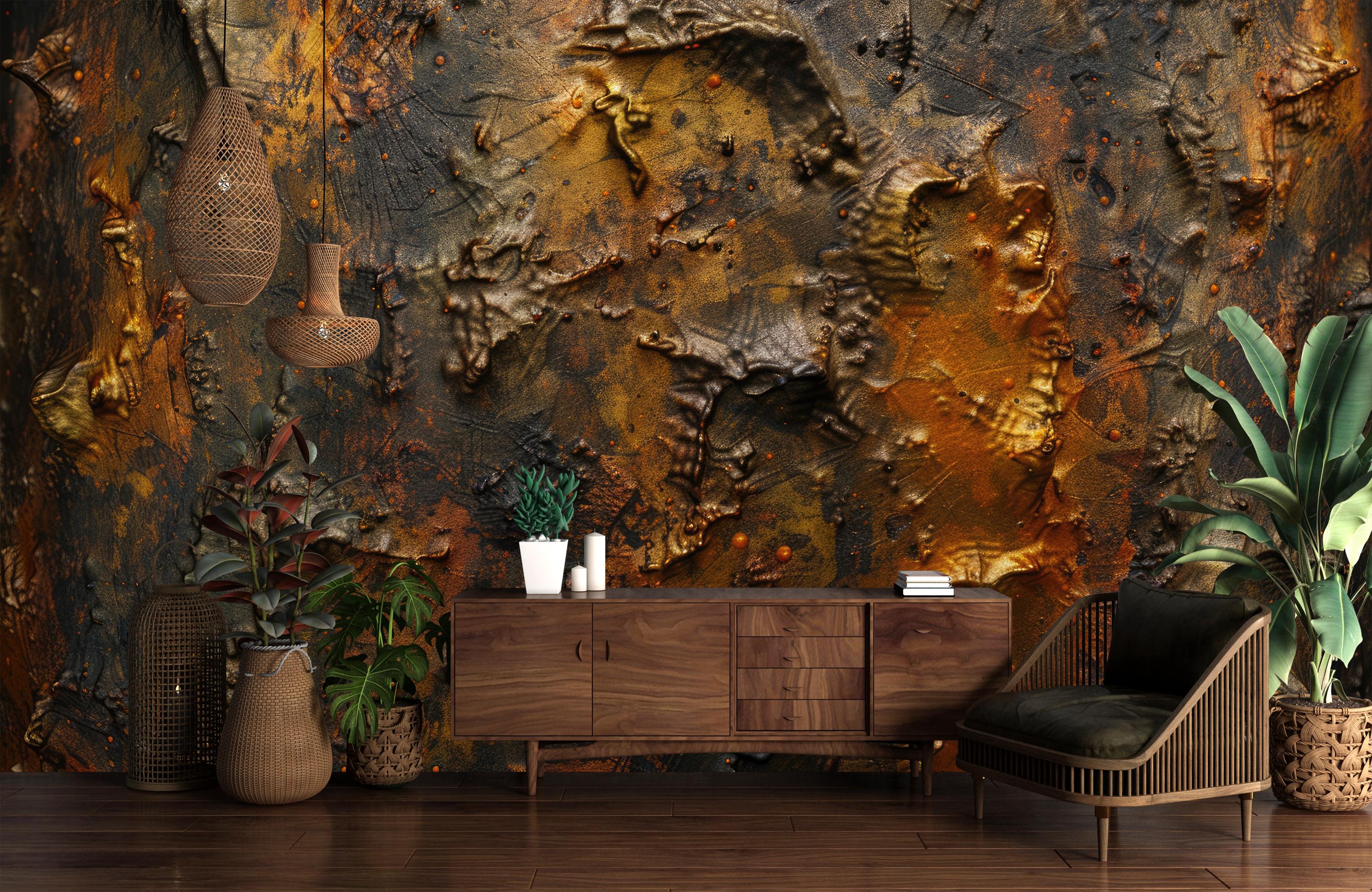 "Elevate your space with this copper brown textured wallpaper mural, designed to replicate the ...