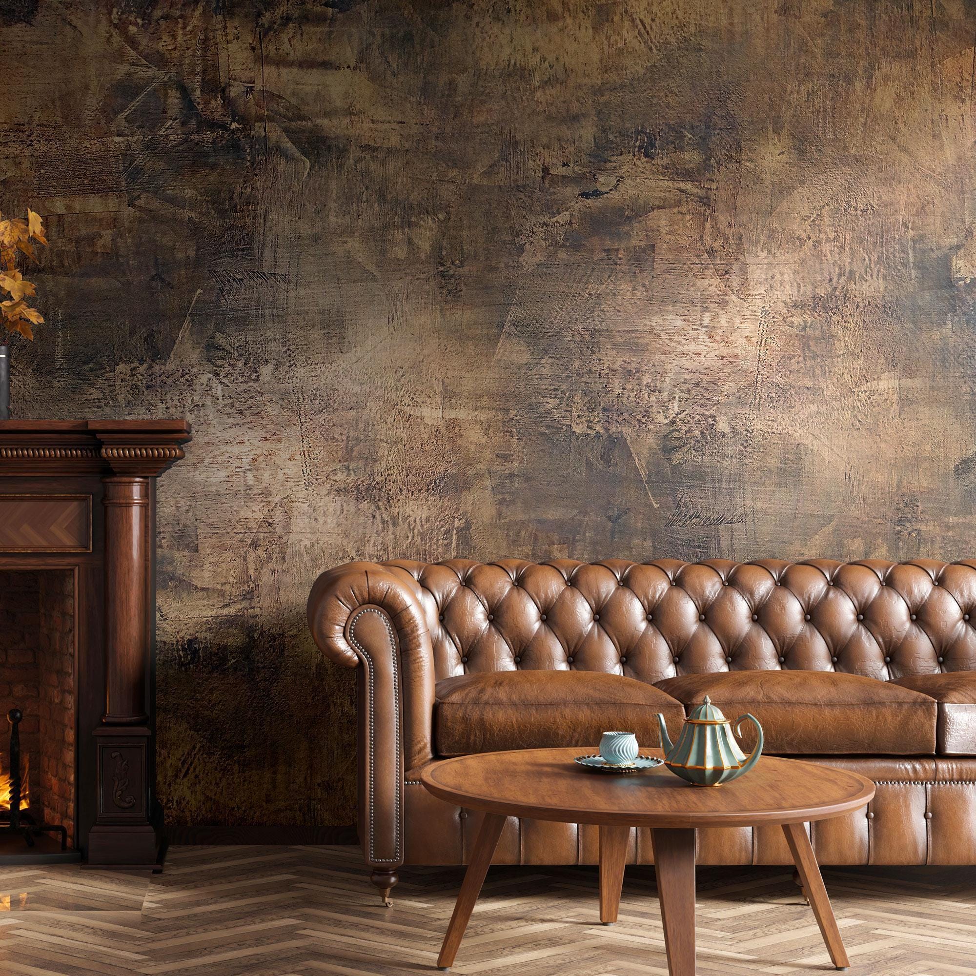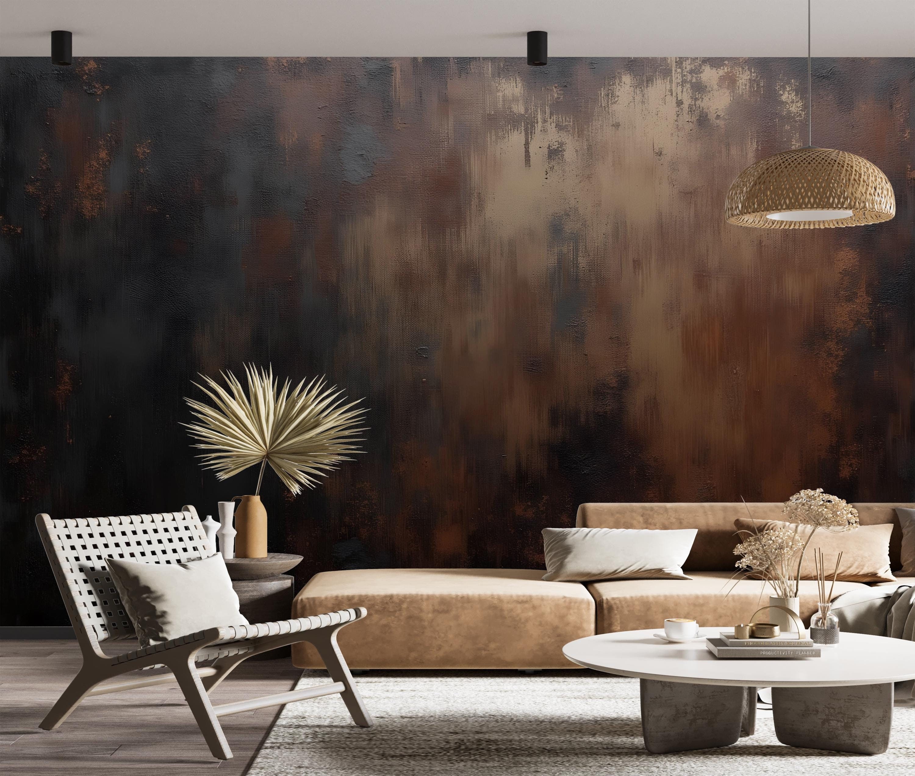 Brown Copper Textured Wallpaper Peel and Stick,Dark Rusty Mural,Grunge Wall Decor,Ancient Wall Art,V...