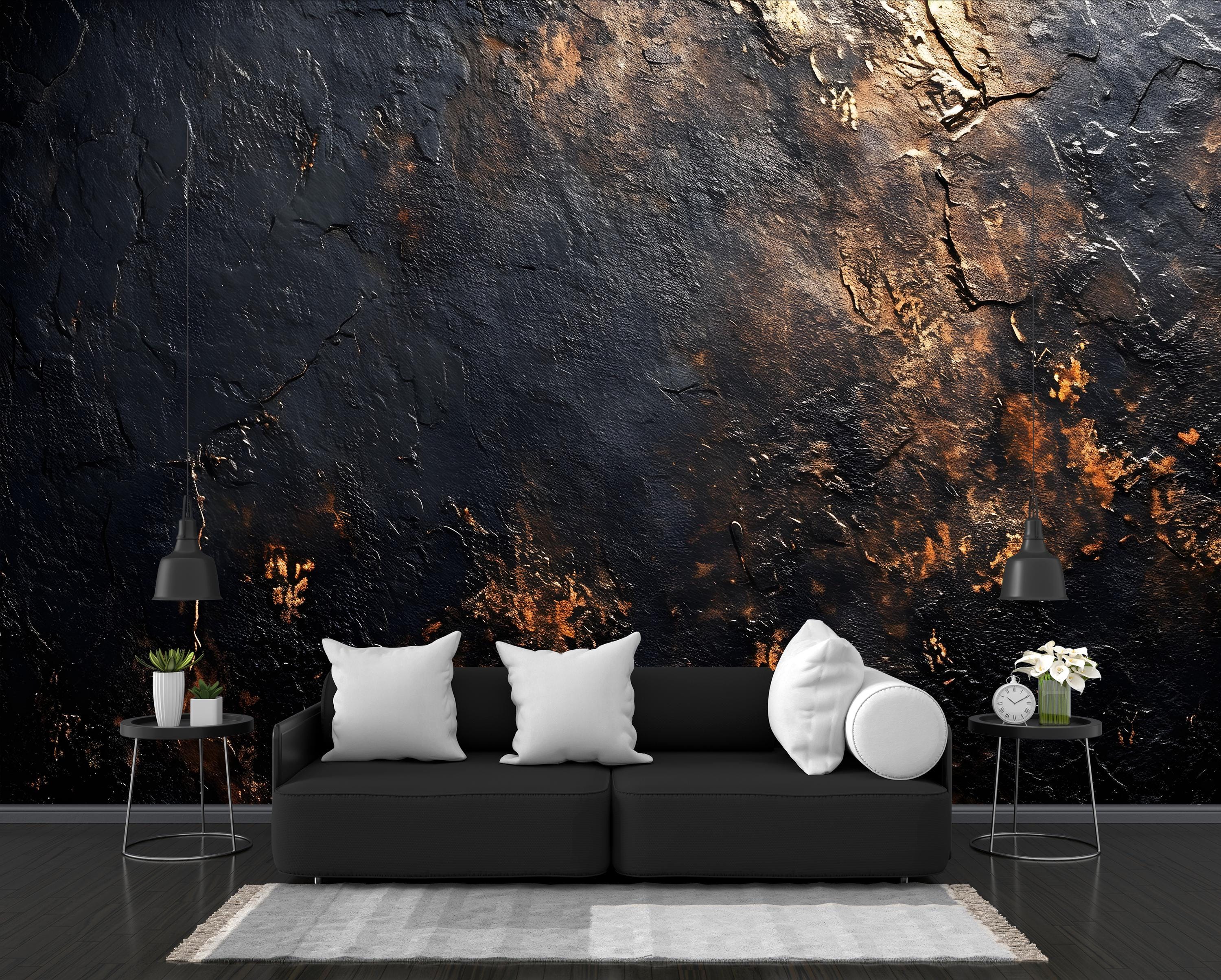 Black Copper Textured Wallpaper: Dark Grunge Wall Mural (Peel and S...