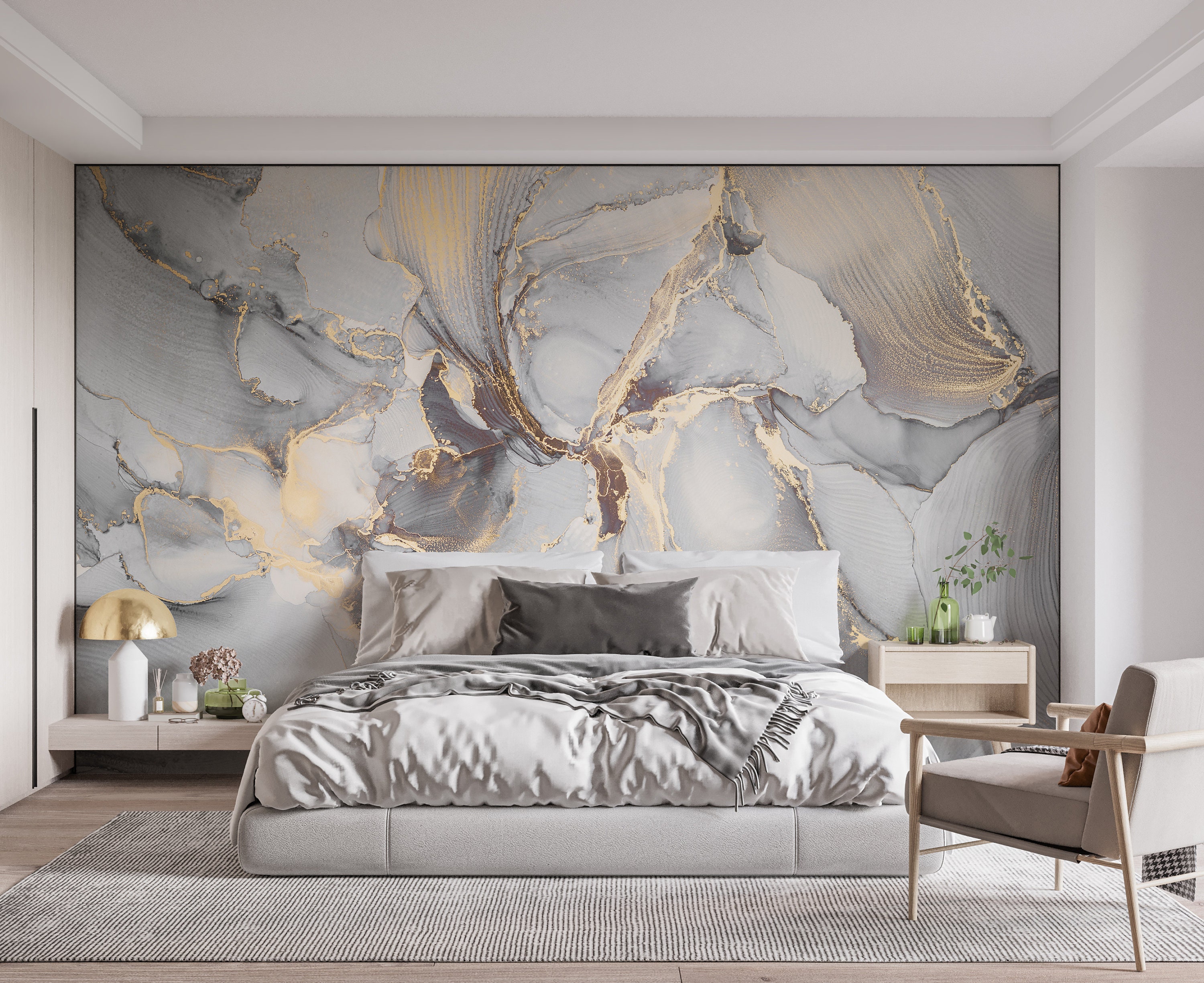 Custom 3D Grey Gilded Wallpaper Murals Modern Abstract Marble Wall ...