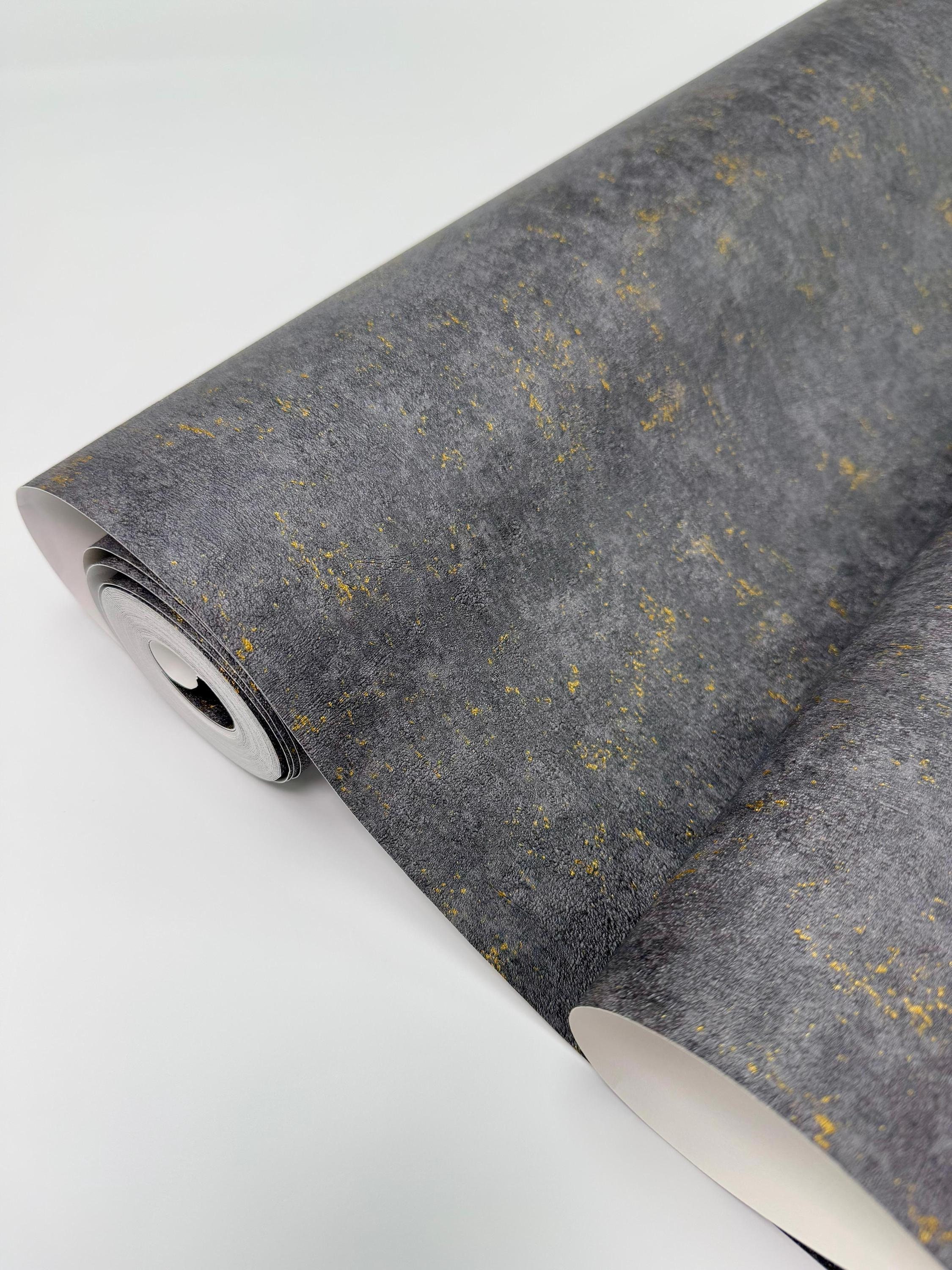 Dark Gray and Gold Non-Woven Wallpaper, 3D Textured Wallcovering, I...