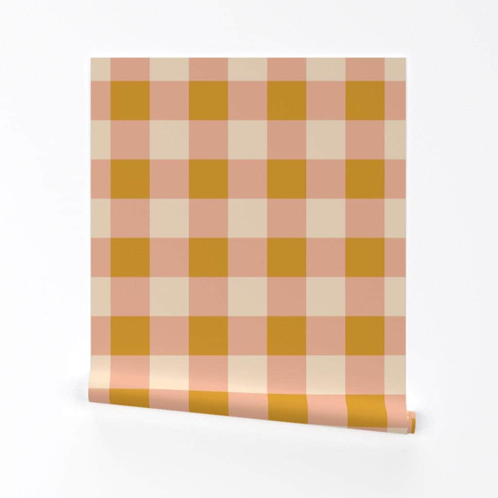 Plaid Removable Peel and Stick Wallpaper - Gingham Pink Yellow Must...
