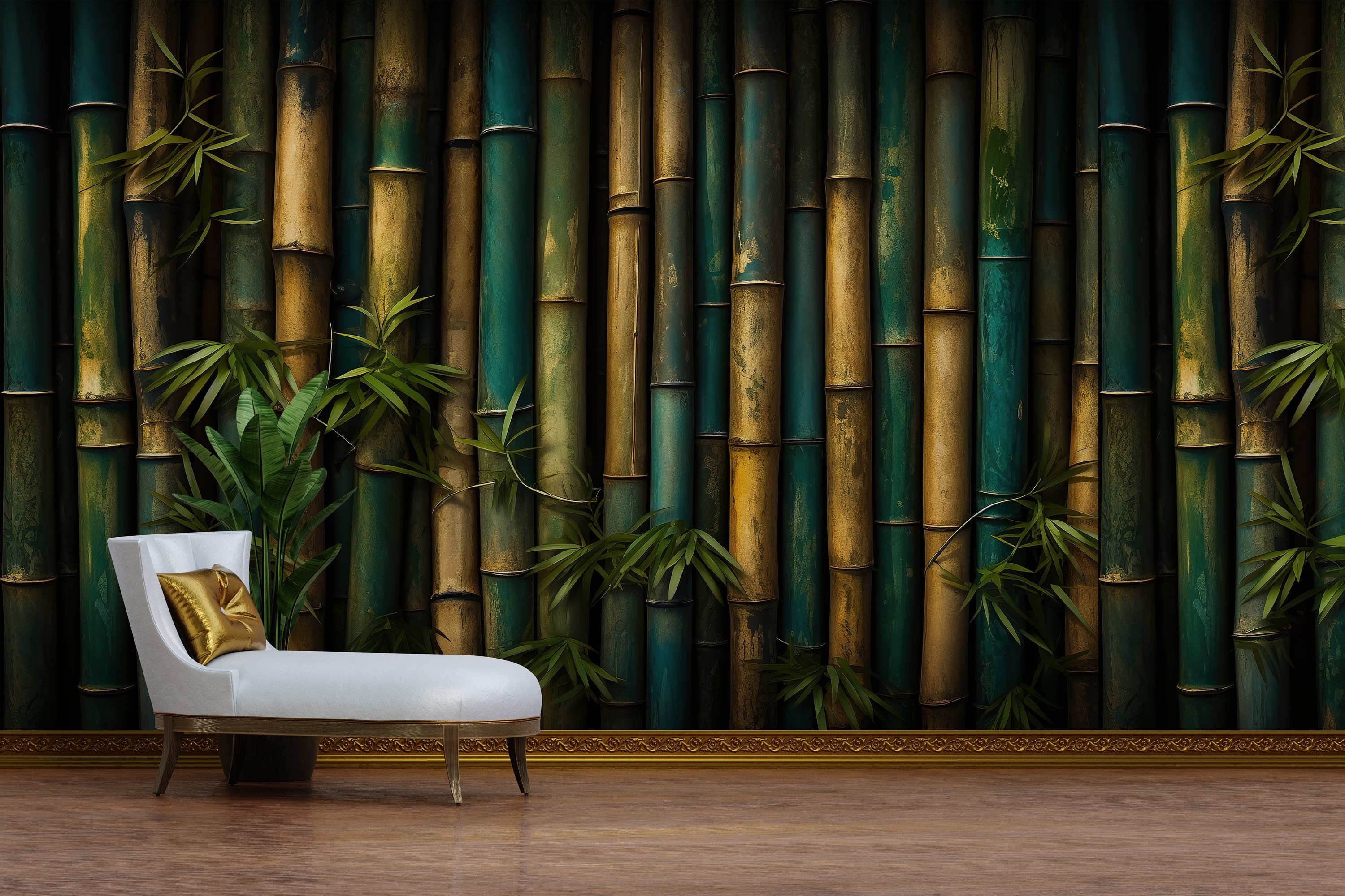 Green Bamboo Wall Art For Living Room Green Botanical Wallpaper Min...