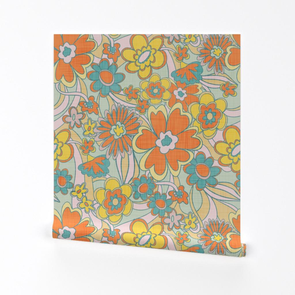 1970s Floral Removable Peel and Stick Wallpaper - Orange Botanical ...