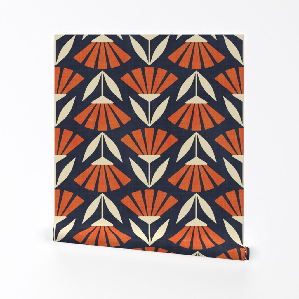 Orange Removable Peel and Stick Wallpaper - Blue Navy Flowers Retro...