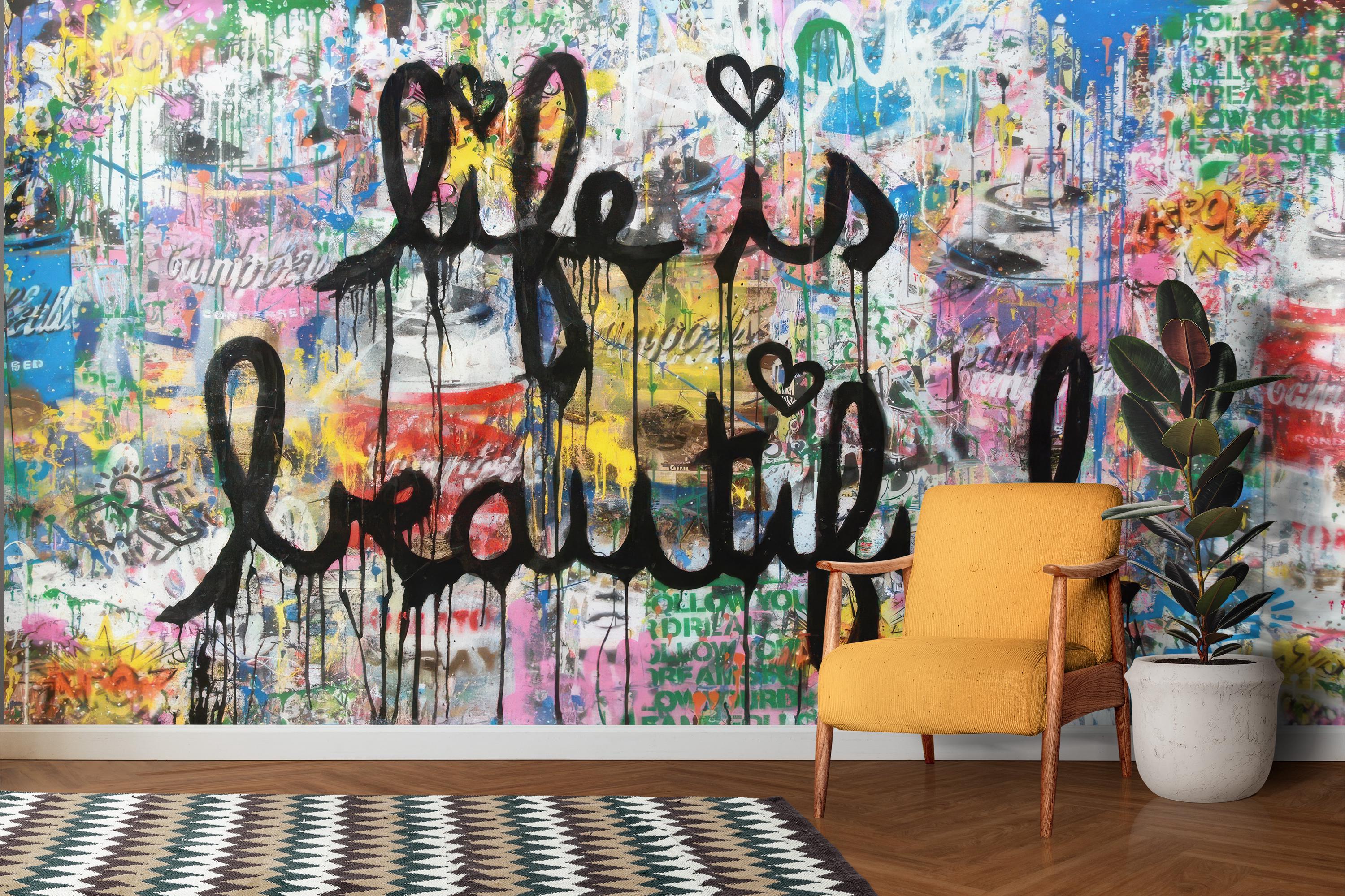 "Urban Streat Art Graffiti on the wallpaper is perfect for decorating a bedroom, living room or...