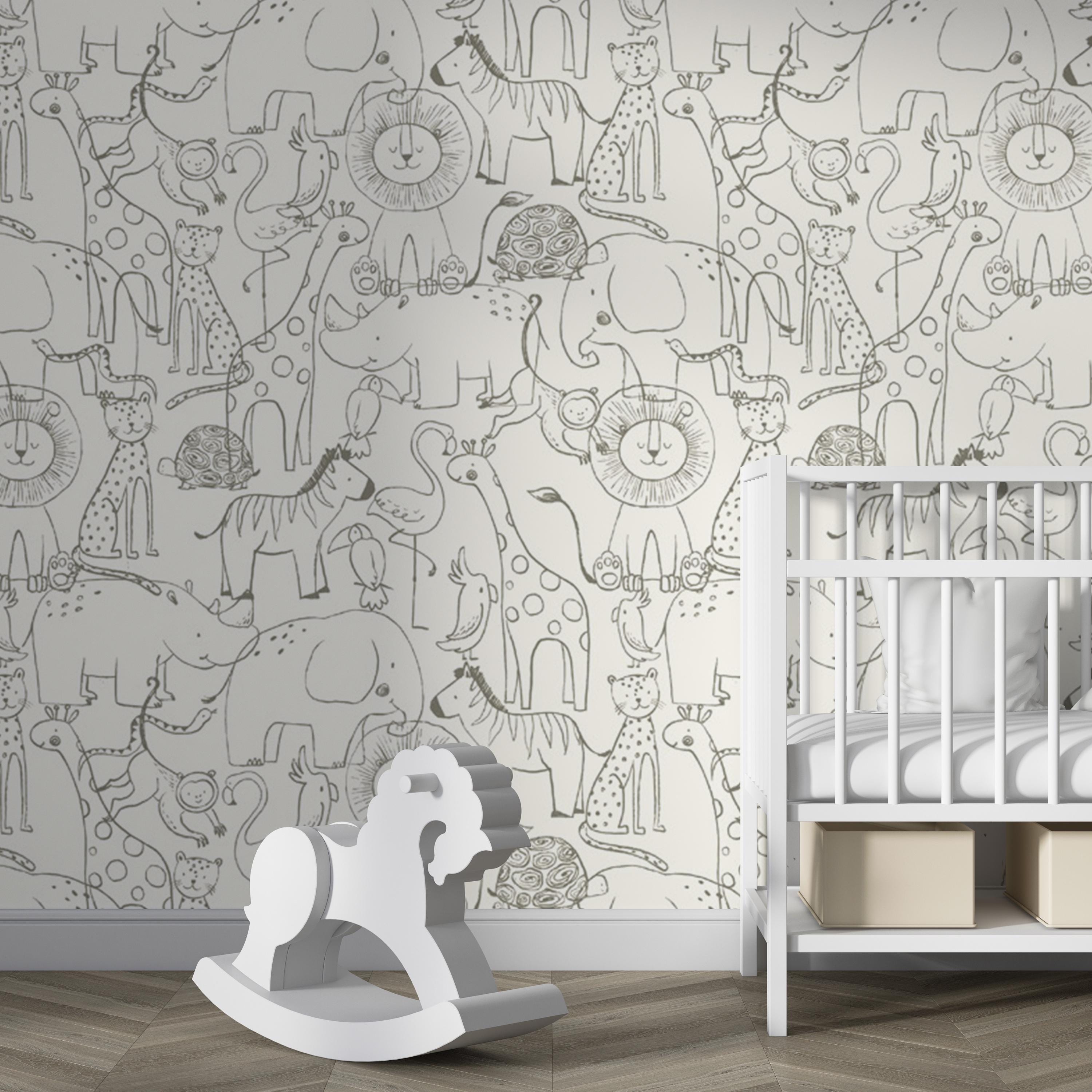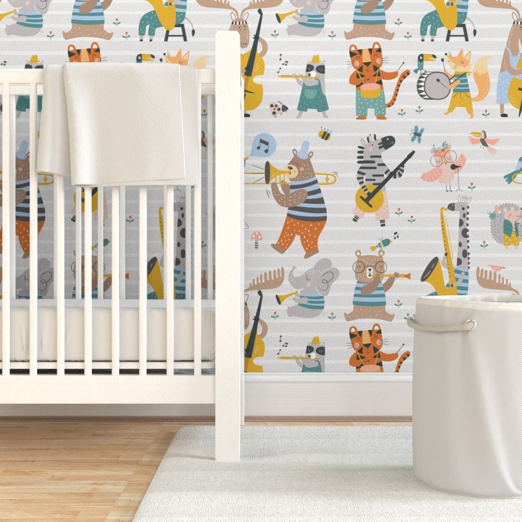 Kids Safari Animals Wallpaper, Nursery Animals Wallpaper, Removable...