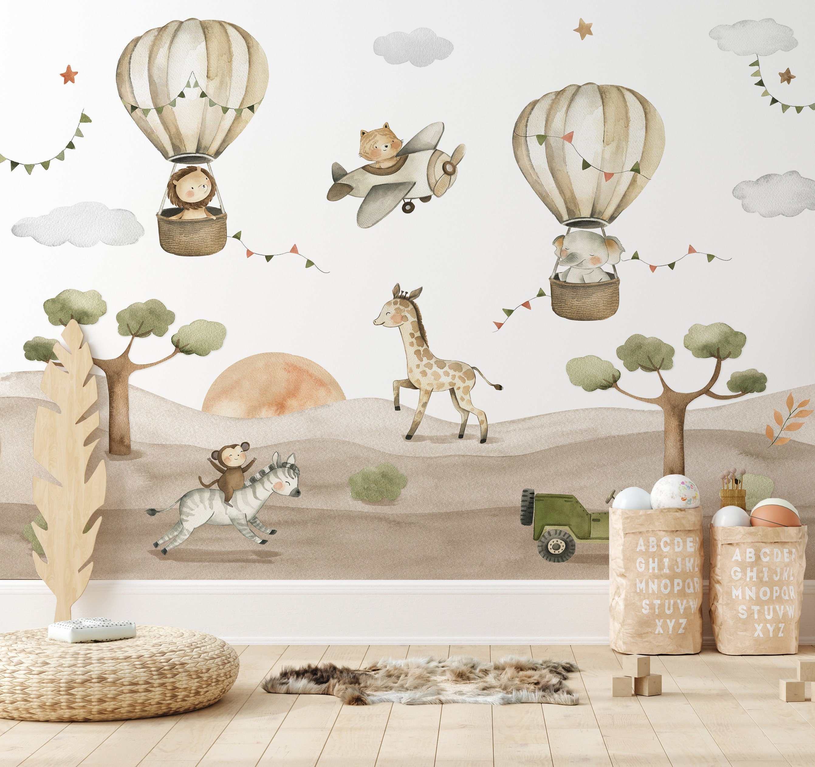 SAFARI ANIMALS Stickers, Nursery Room Decor, Peel and Stick Animals...