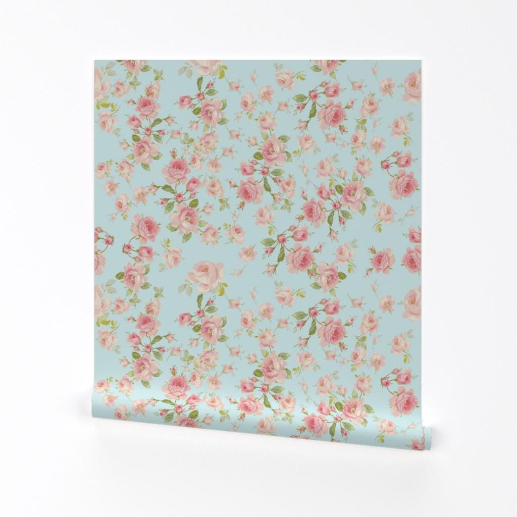 Aqua Blue Wallpaper - Saint Colette June Roses Aqua By Lilyoake - B...
