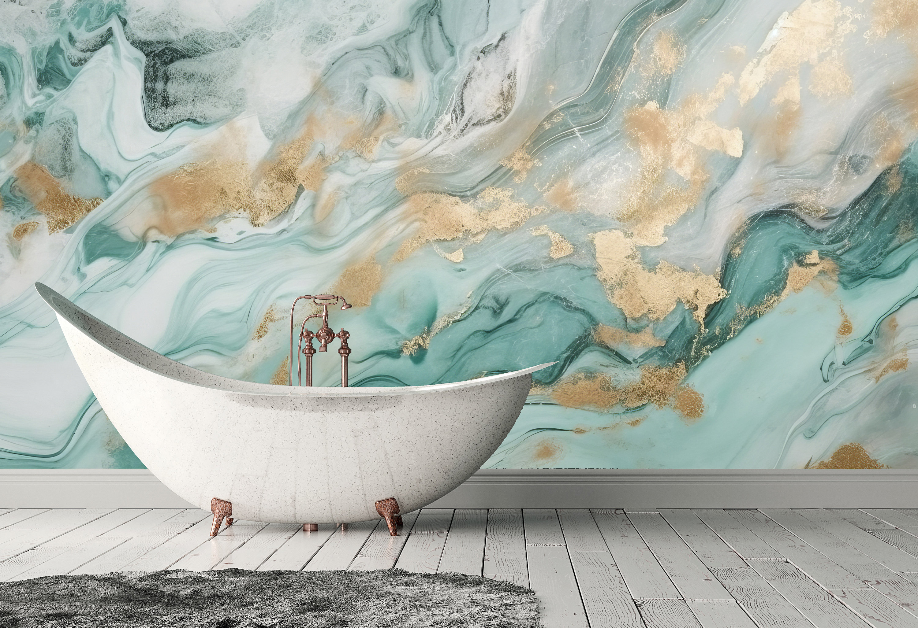SOFT Aqua Gold Marble Wallpaper | Modern Abstract Gold Mural | Luxu...