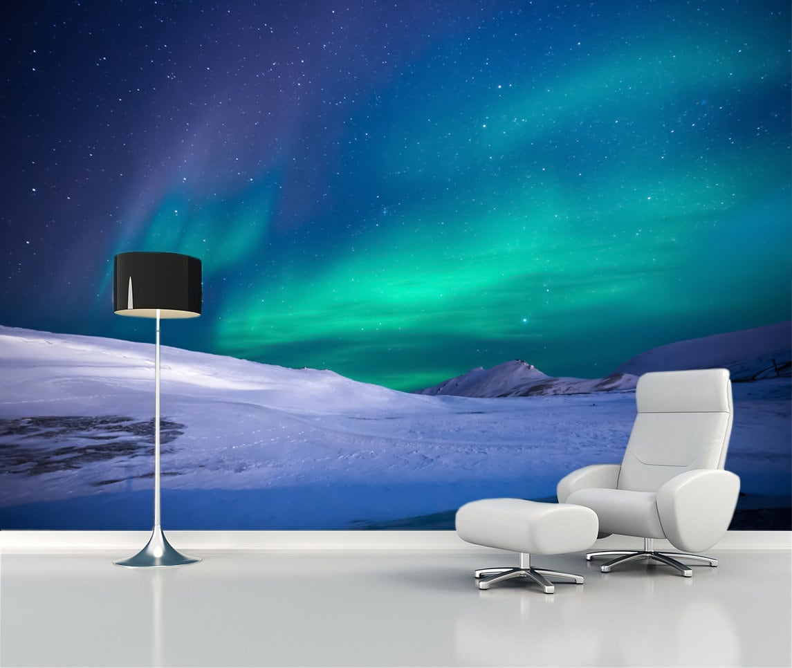 "Northern lights Wallpaper Peel and Stick Wall Mural Landscape Wall Decor Aurora Wall Mural Arc...