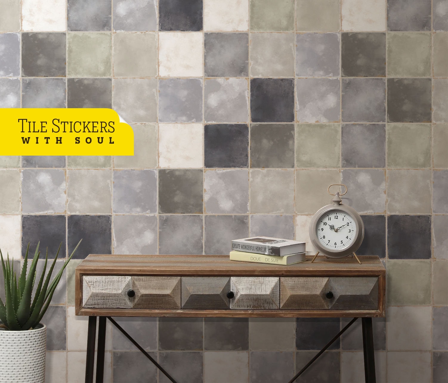 Old Tile Stickers for Floor and Wall, Tile Stick Peel Backsplash Wa...