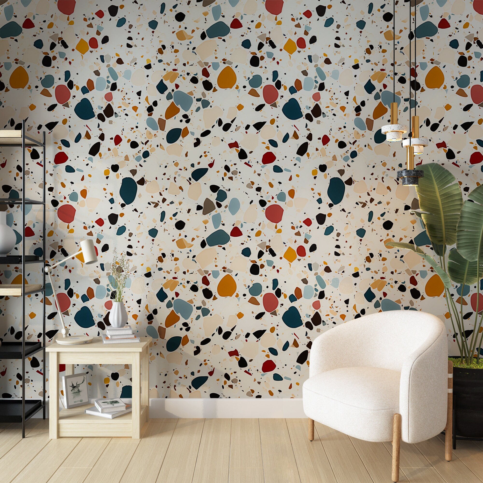 Rainbow Terrazzo Wallpaper, Kitchen and Bathroom Wall Art, Colorful...