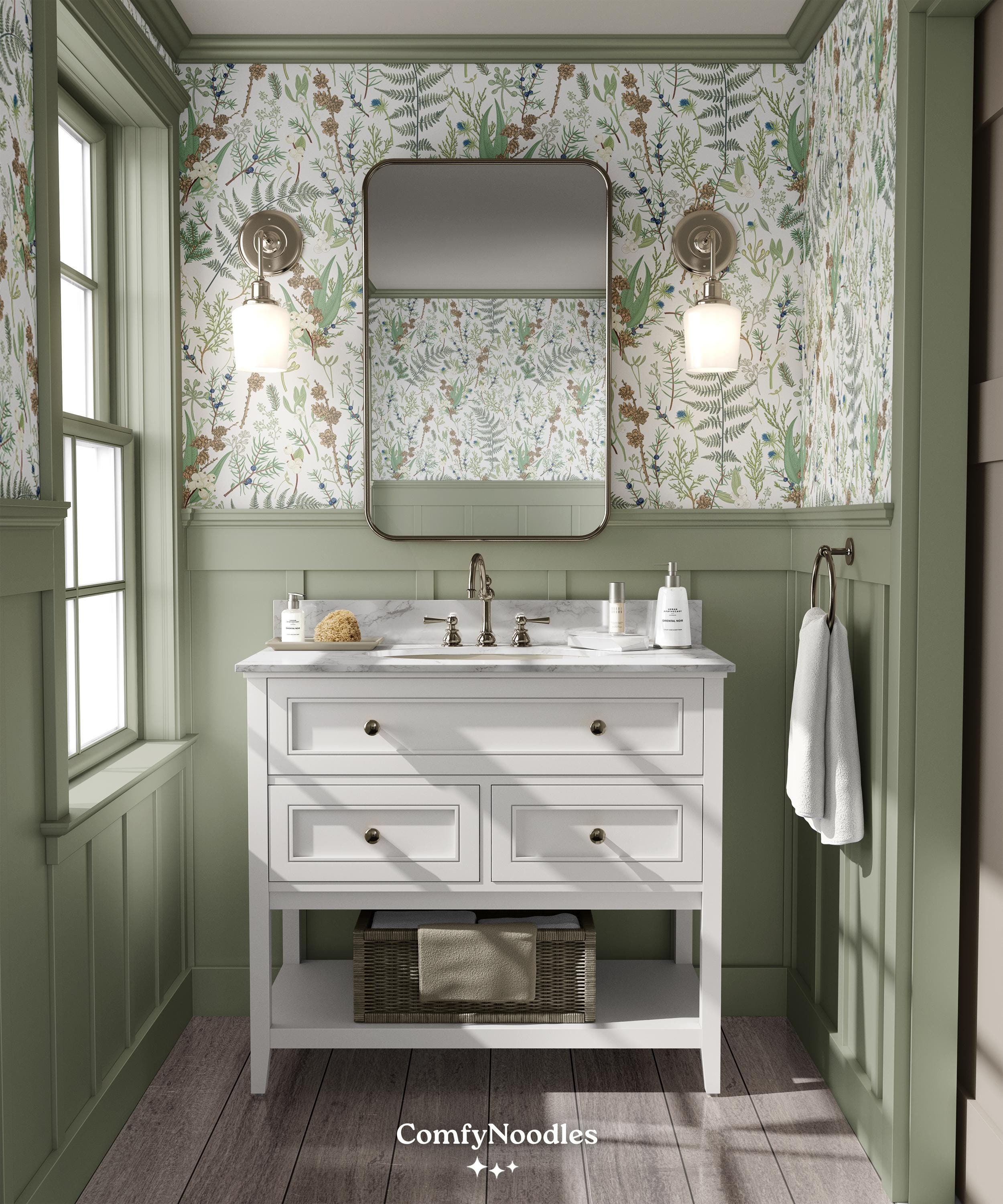 Light Green Botanical Wallpaper | Vintage Forest Bedroom Bathroom S...