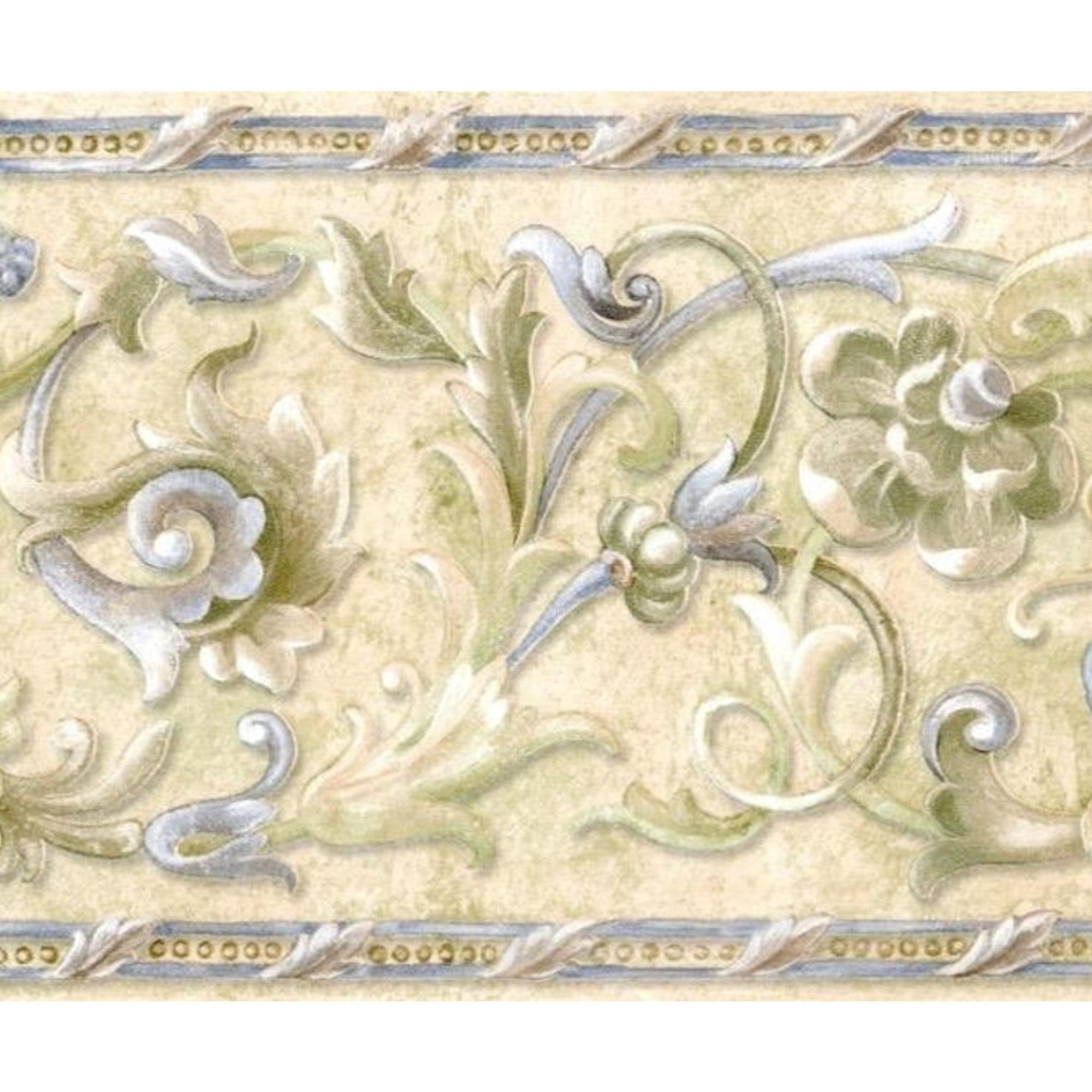 Victorian Acanthus Scroll Leaf Wallpaper Border, Green & Blue F...