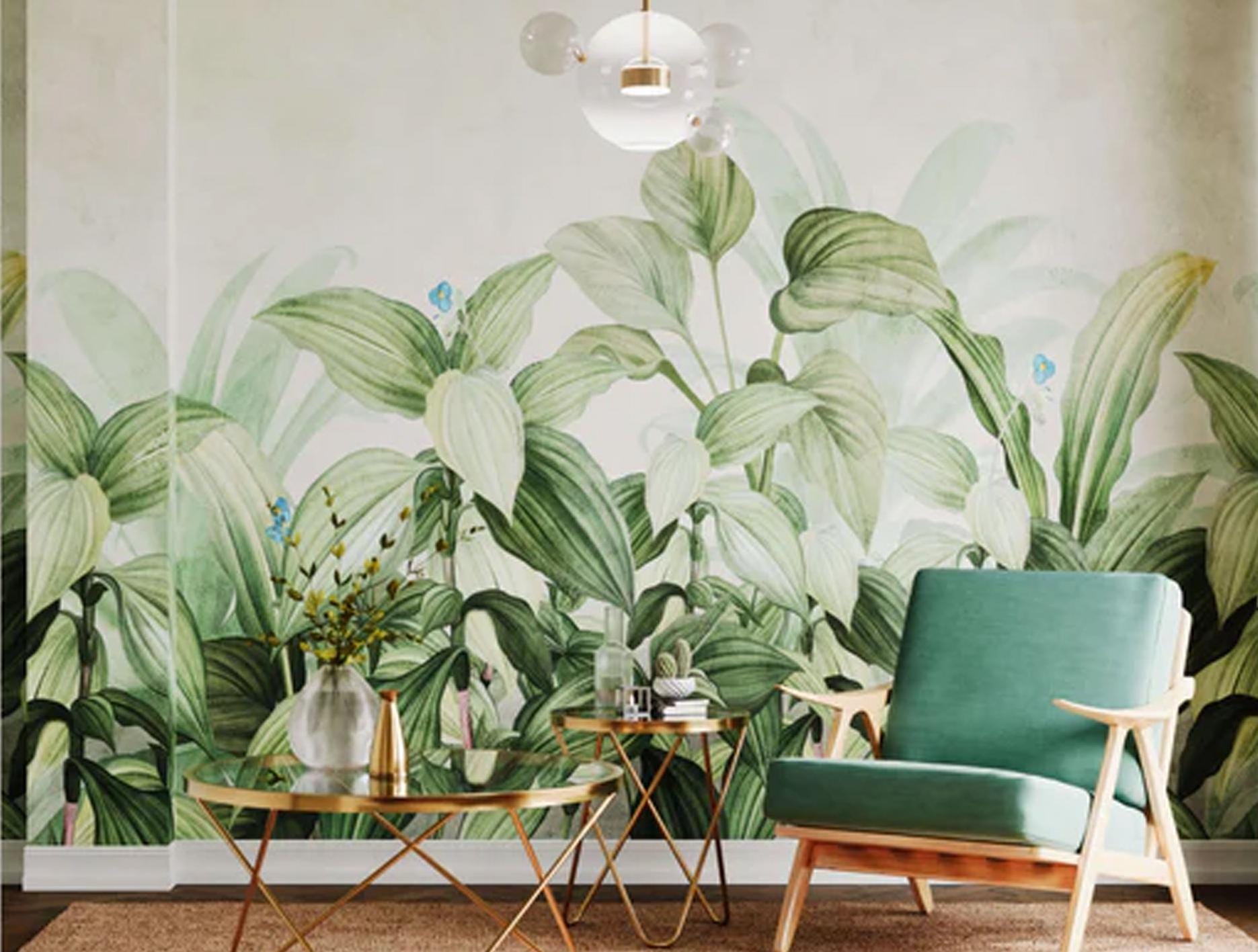Minimalist Green Leaves Mural Botanical Plant Wallpaper Leaf Wall D...