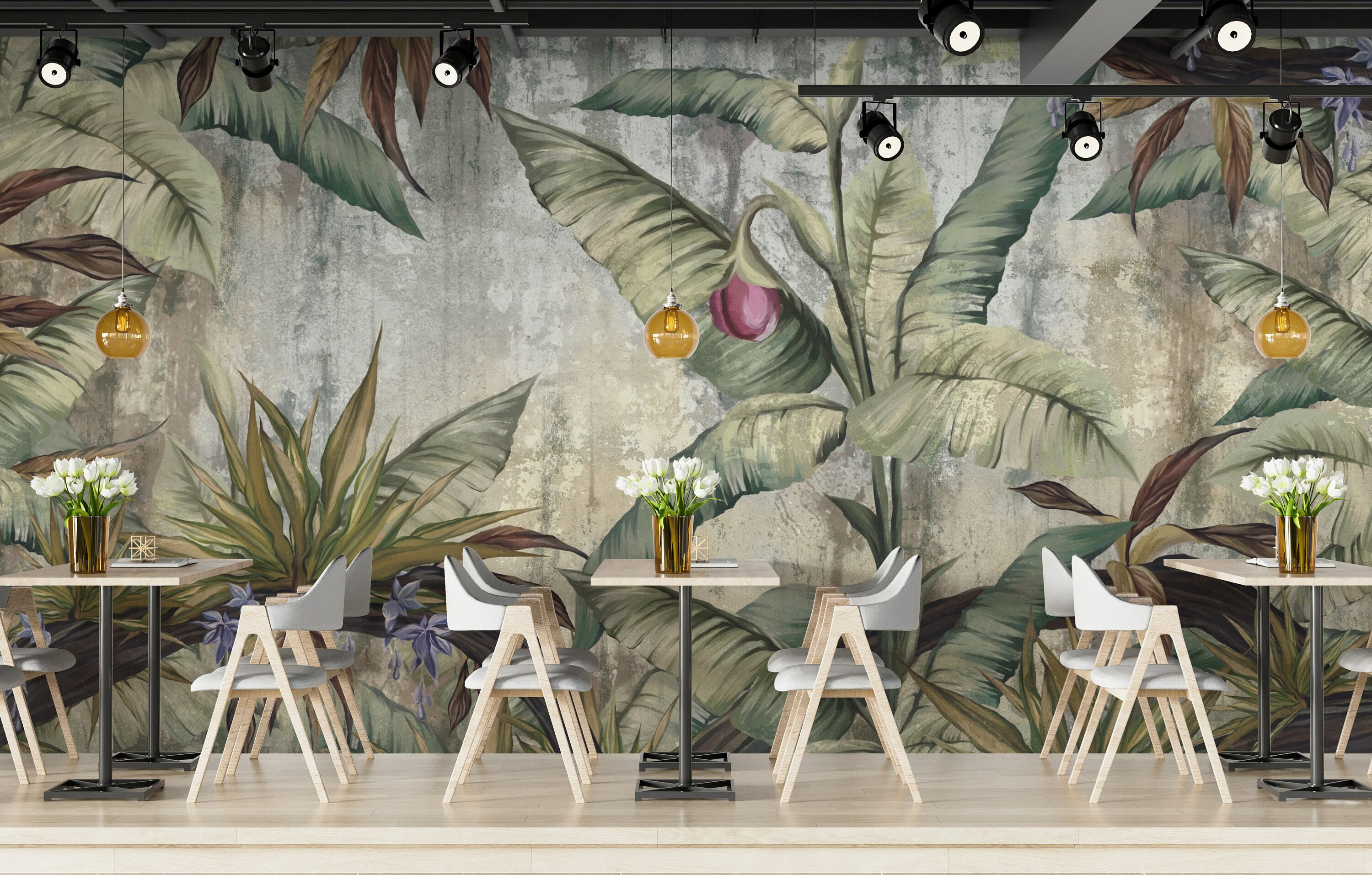 Big Leaf Pattern Wallpaper Exotic Plants Peel and Stick Wall Mural ...