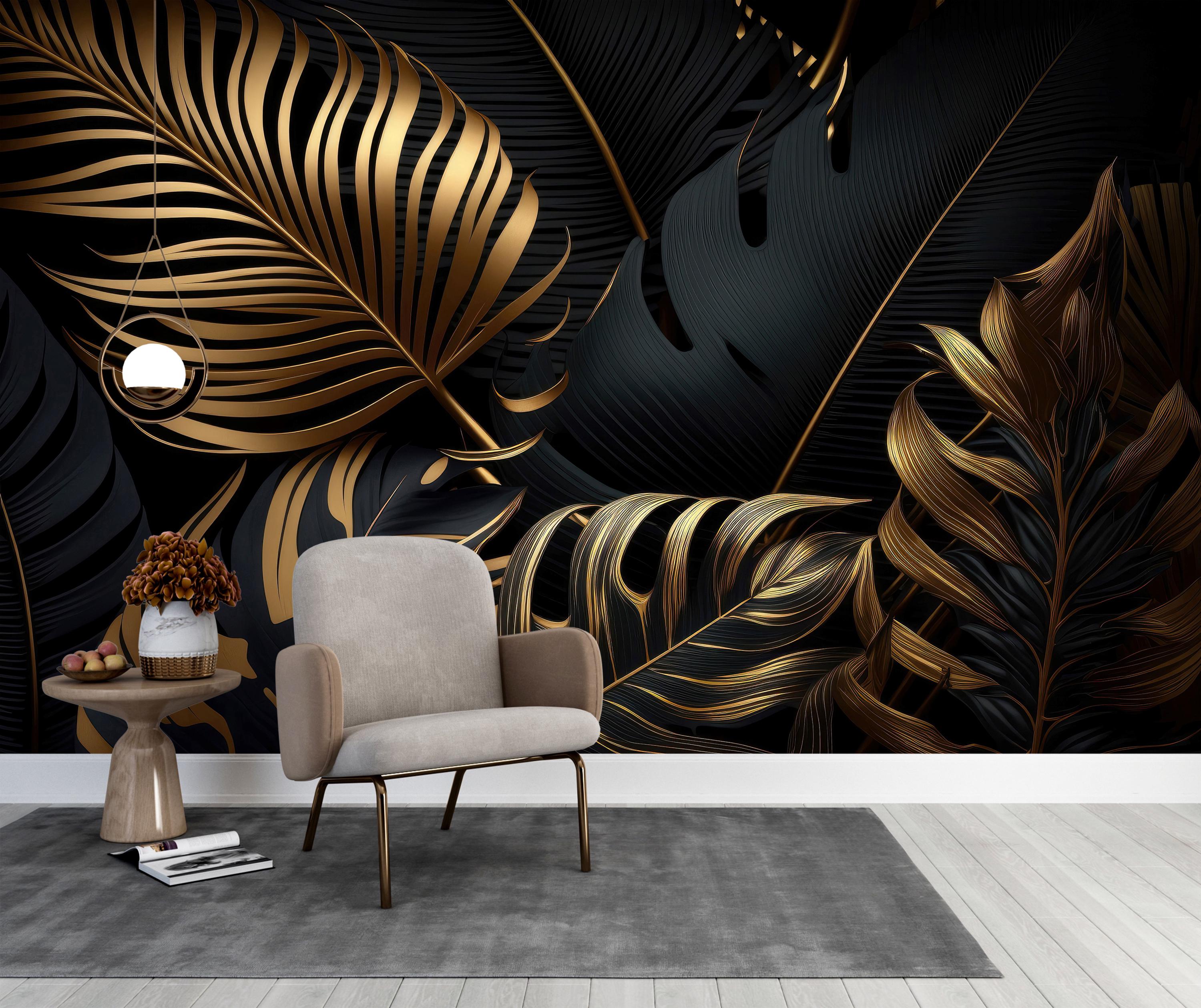 Black Gold Tropical Leaves Peel and Stick Wallpaper,Large Monstera ...