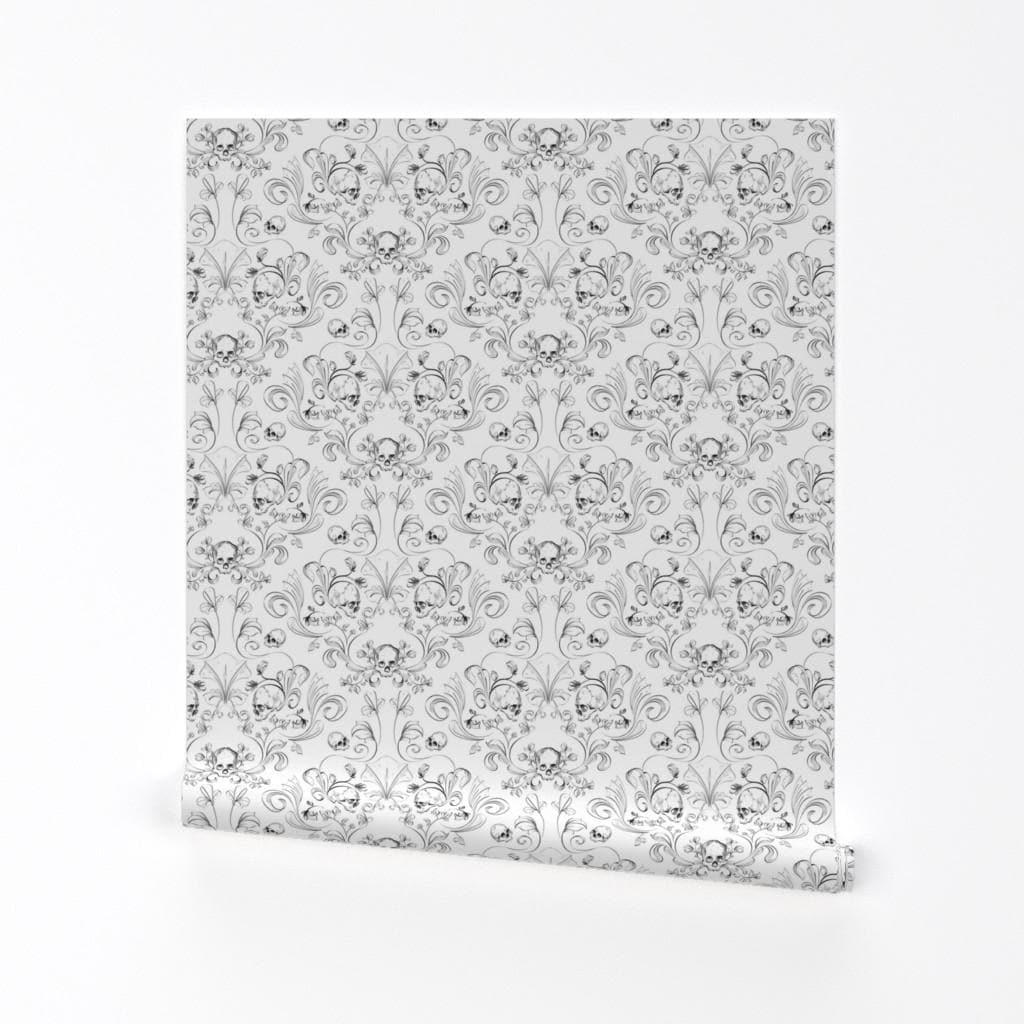Skull Wallpaper - Black And White Skull Damask By Lucaswoolleydesig...