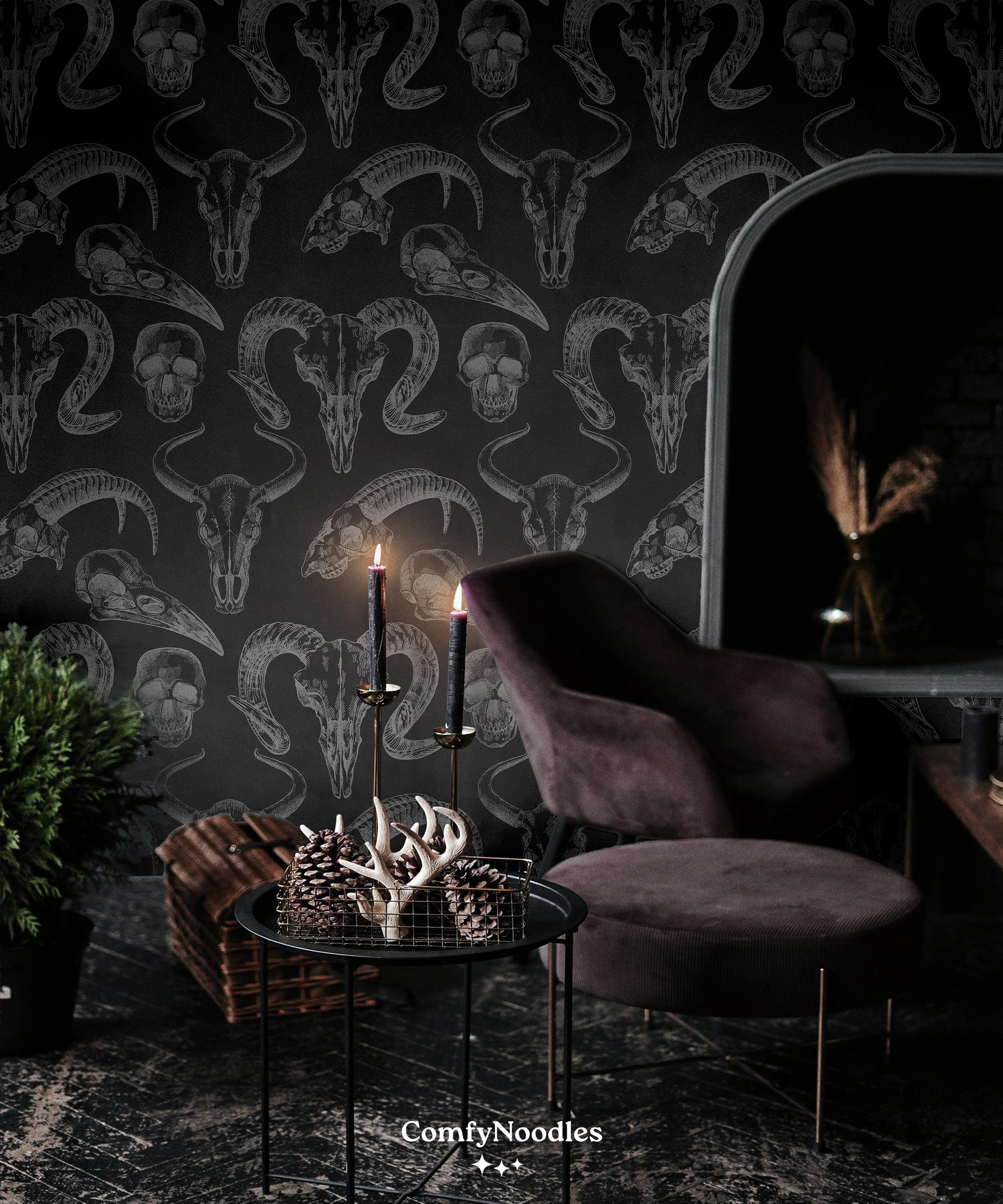 Dark skulls wallpapers are perfect for moody and gothic interiors. Add a touch of dark academia aest...
