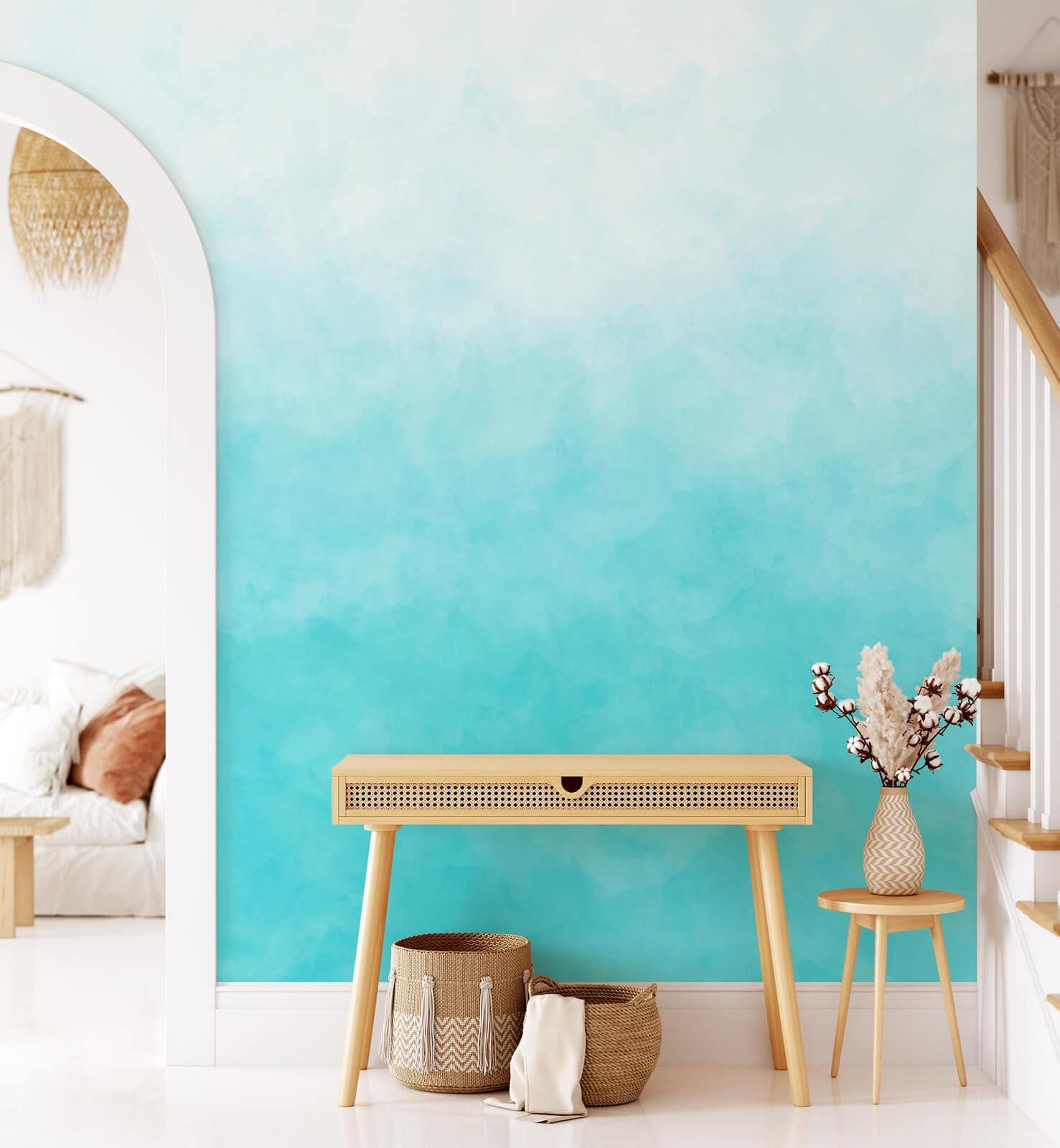 "Ombre Wallpaper, Pastel Blue Ocean Abstract Wallpaper, 3d Teal Ocean Wall Mural, Vinyl Wallpap...