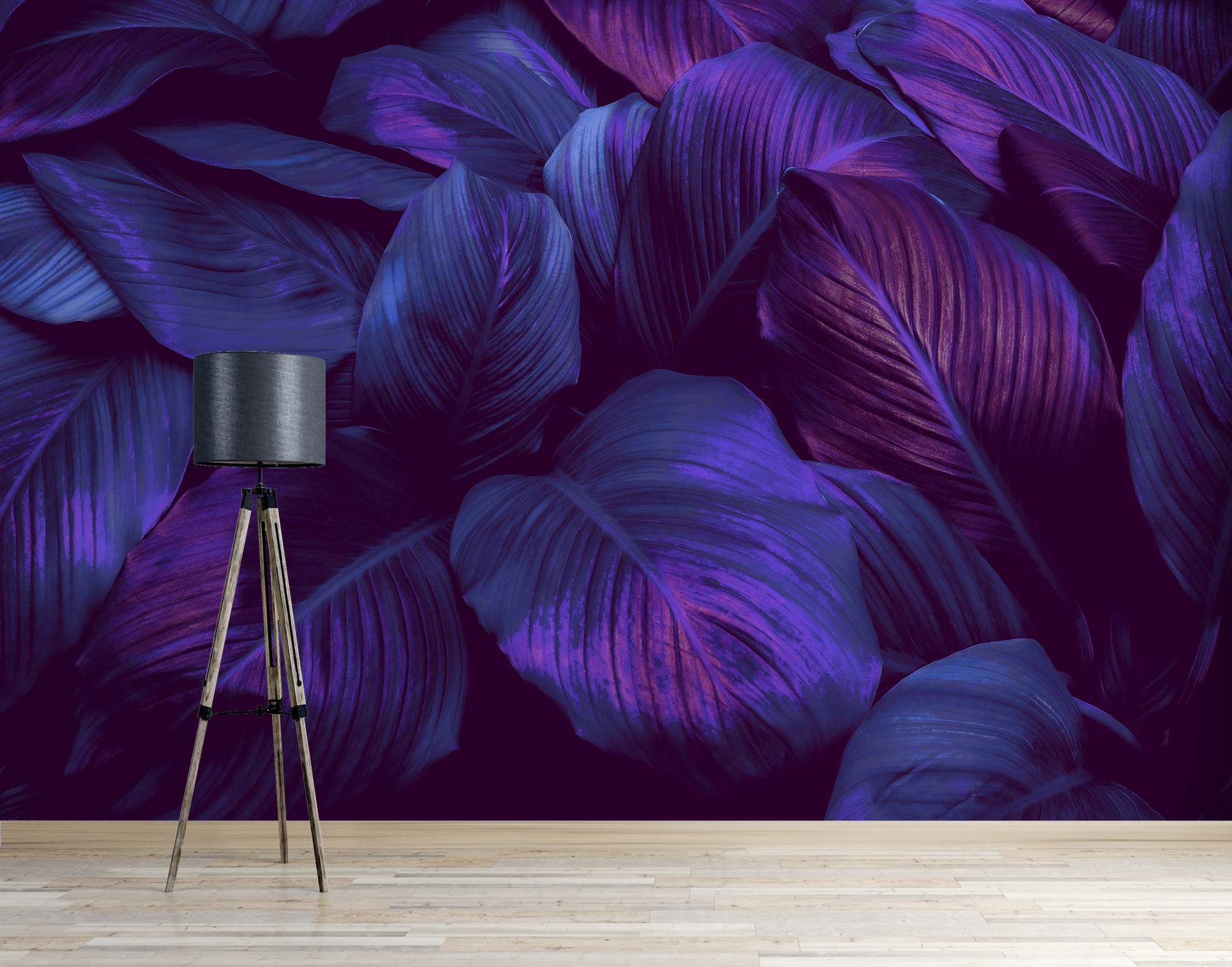 Dark Purple Leaf Wallpaper Mural - Luxury Tropical Botanical Wall A...